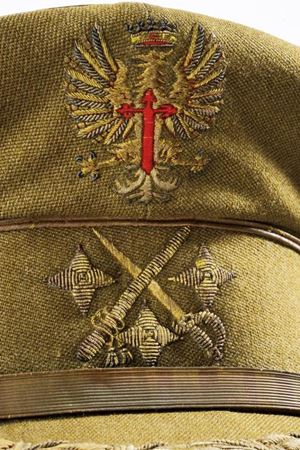 Consisting of hat, jacket and trousers. The hat with all gilded-threads parts and a three-star ornament. With leather sweat band inside featuring remains of the manufacturer's name and silk cap. Heavy signs of use. The jacket with metal flashes on the lap