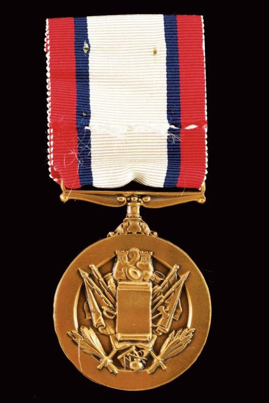 Made of partially enameled bronze with band.