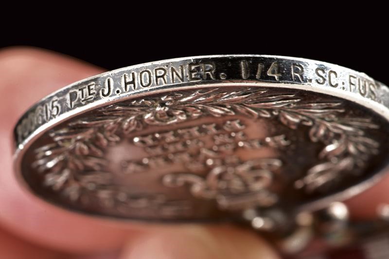 George V type, without crown. Marked '200615 P.TE J. HORNER. 1/4 RSC:FUS." at the border. On ribbon.