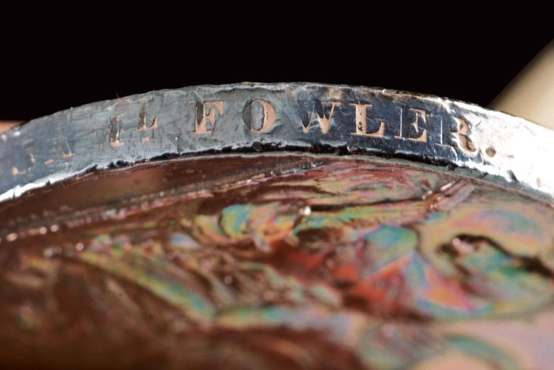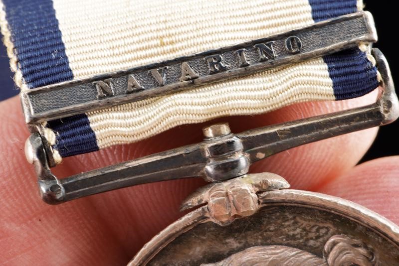Made of silver. Marked "SAM.L FOWLER." on the border (the first letters barely visible). On ribbon with bar "NAVARINO".