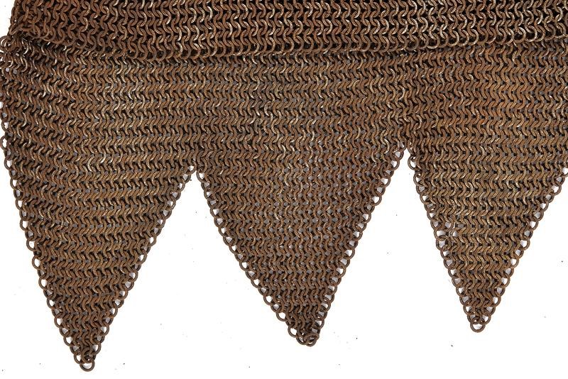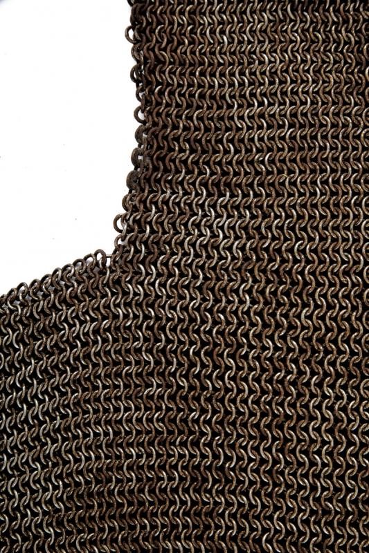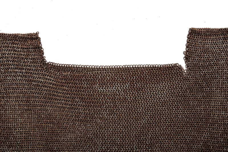 Consisting of numerous small iron rings welded one by one. With neckline, armless, the front part is straight and the back part fringed. Decorative.