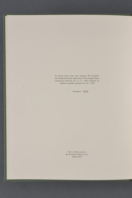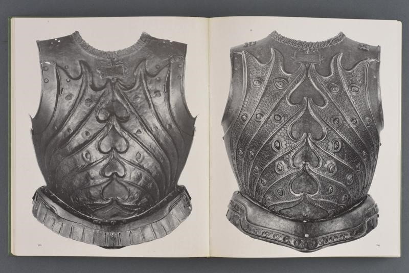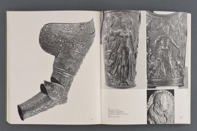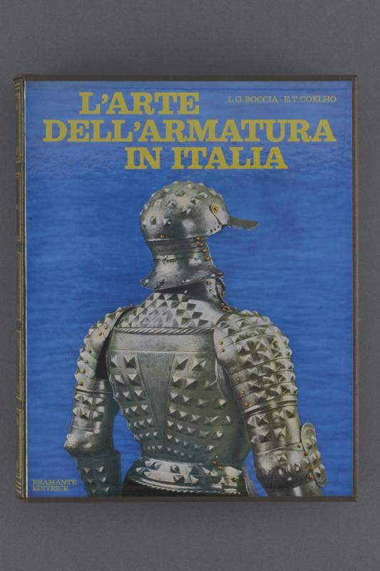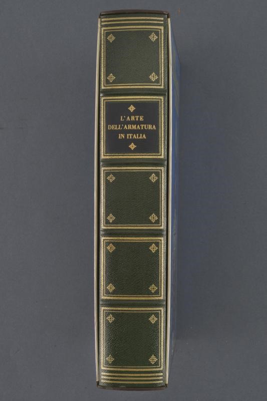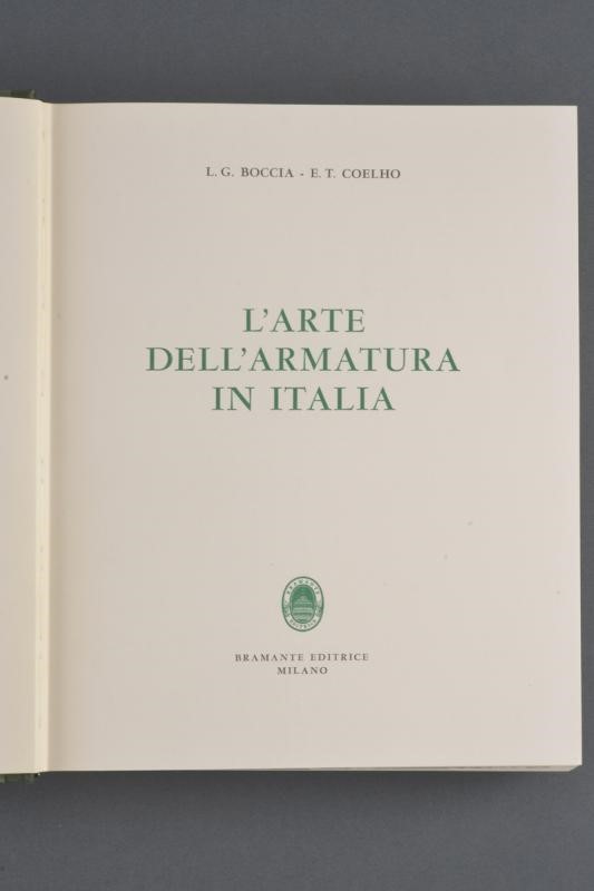 L'Arte dell'Armatura in Italia' Bramante Editrice, Milan, 1967. Copy nr. 349 out of 1600. 549 pages with various b/w and colour photos. Green cloth cover with gilt bas-relief. Leather spine with gold inscription. Original slipcase.