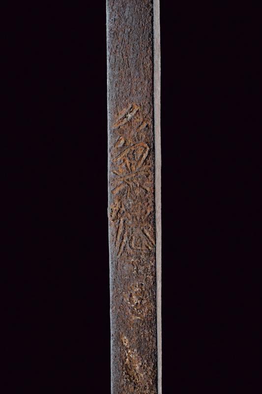 Good quality blade with visible hamon and hada. Nagasa 24,7 cm. Nakago Mei: Kanetoki. Preserved in Shirasaya and with a short shaft. Rare.