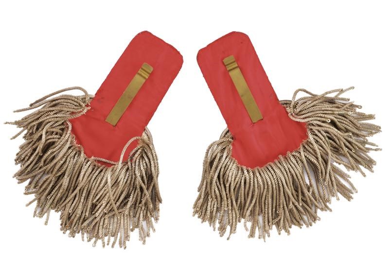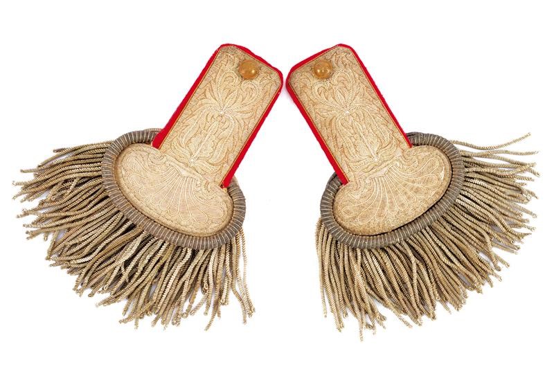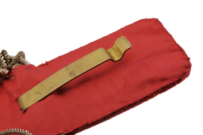 The surface is richly embroidered with threads, movable canvas fringes, button with Papal tiara and crossed keys; lined in velvet and red silk; in their original box.