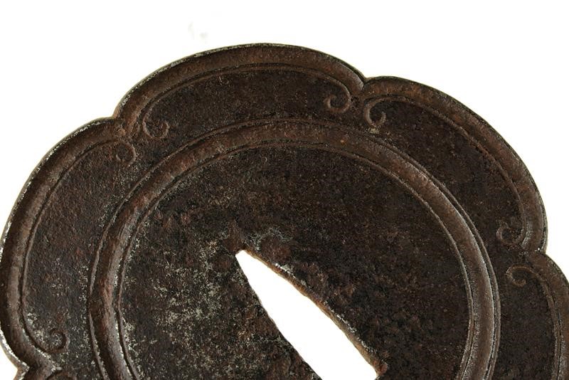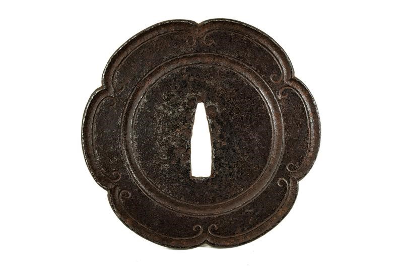Made of iron, Mokko-gata with six lobes. Decorated with fullers and fine outlining. In kiri-box.