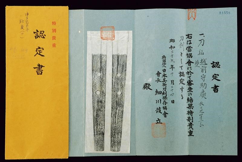 An important katana in shirasaya, mei: Echizen no Kami Sukehiro, Edo Period (1603-1867)