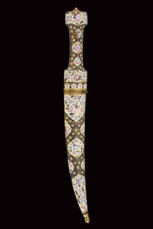 A fine enamelled kandshar, 19th Century