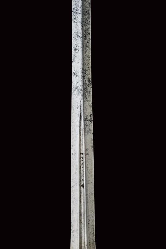 Straight, double-edged blade, the first part with central groove and inscription "ZUCHINI". Solid, gilded brass hilt fully engraved with crossed bands and palmettes.