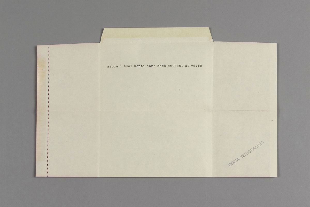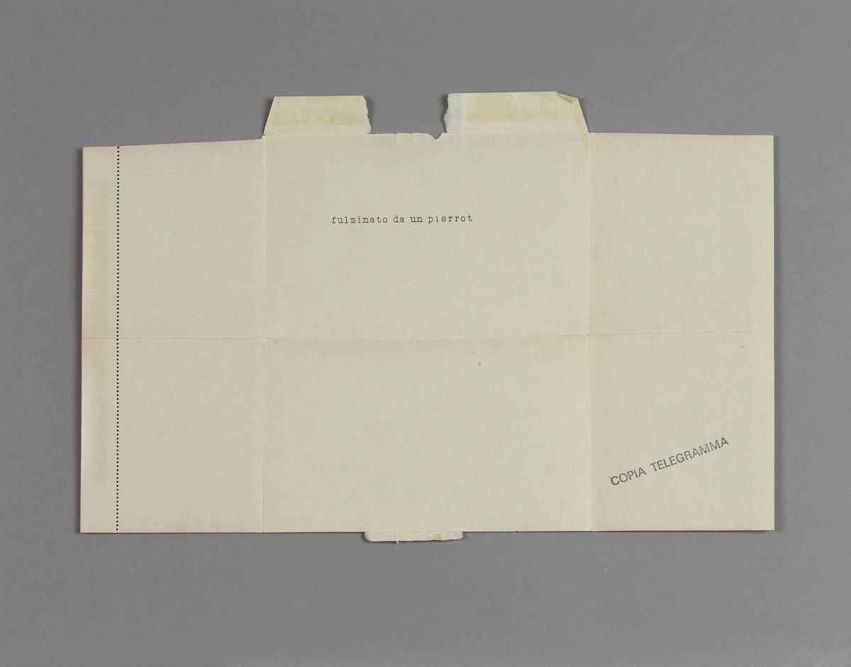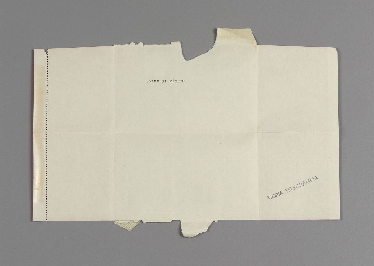 Pier Paolo Calzolari made the following work in April 1976. For 9 days he sent a telegram per day to 15 & nbsp; people. Copies of these 8 telegrams, plus & nbsp; copies of the railway timetable, were sent simultaneously to another 200 people. The railway timetable was sent to all people after the first telegram: a & nbsp; official table relating to the Milan - Nocera Inferiore line with some transit works marked in pencil. The last telegram was sent only to the two recipients, Marco Bagnoli and Jannis Kounellis. & Nbsp; On May 5, a railway train departed from Milan in the morning to Nocera Inferiore, in the province of Salerno, with a fully reserved and therefore completely empty wagon.