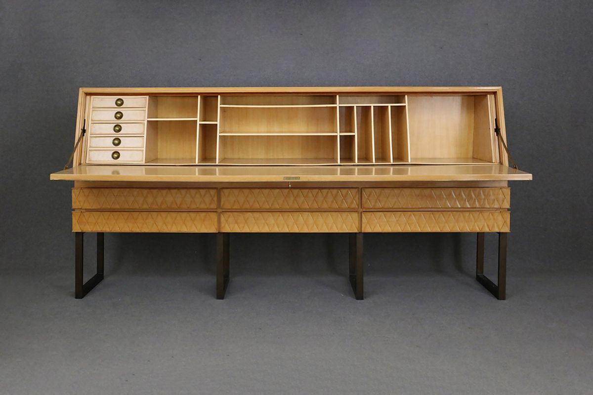 inaded into precious wood essences and metal. Signed on the front.