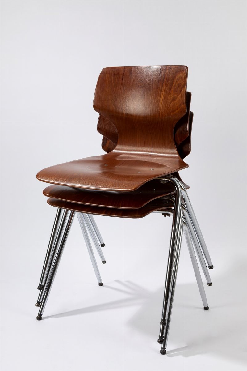 curved plywood, chromed steel legs.