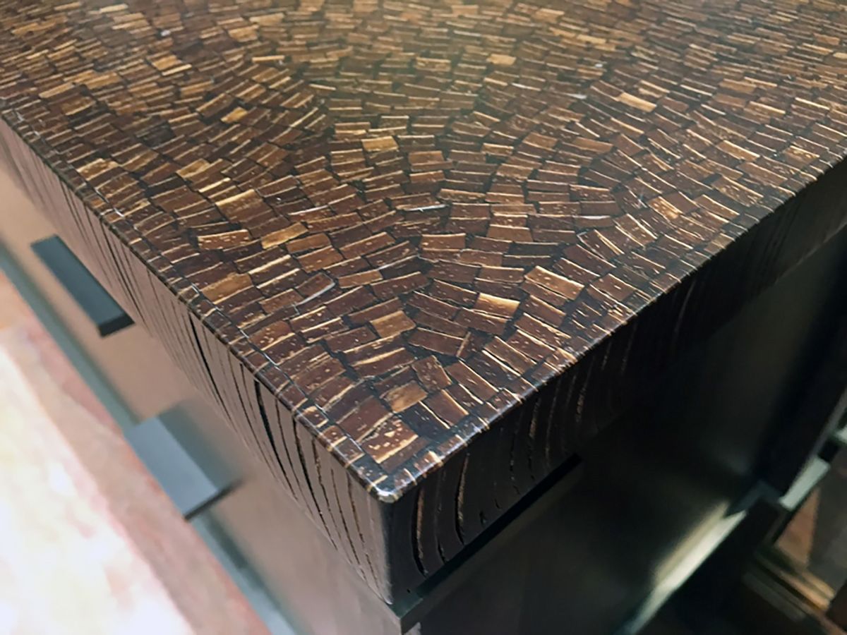 two drawers in palm wood, bronze details.