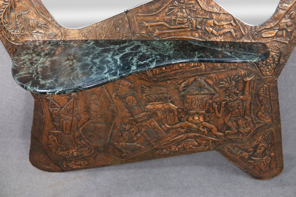 Embossed copper consolle with mirror