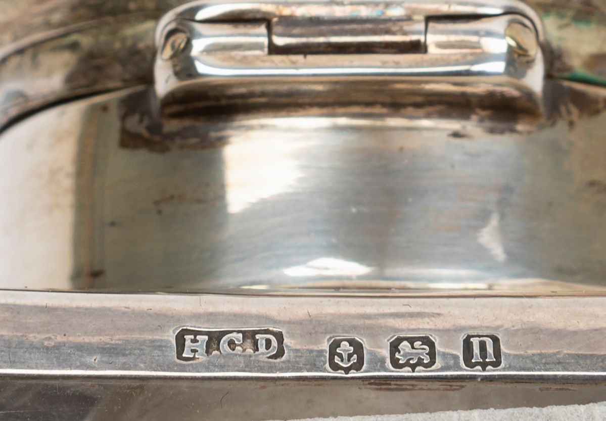 Five sterling silver and crystal table objects, England, France and USA, early 20th Century
