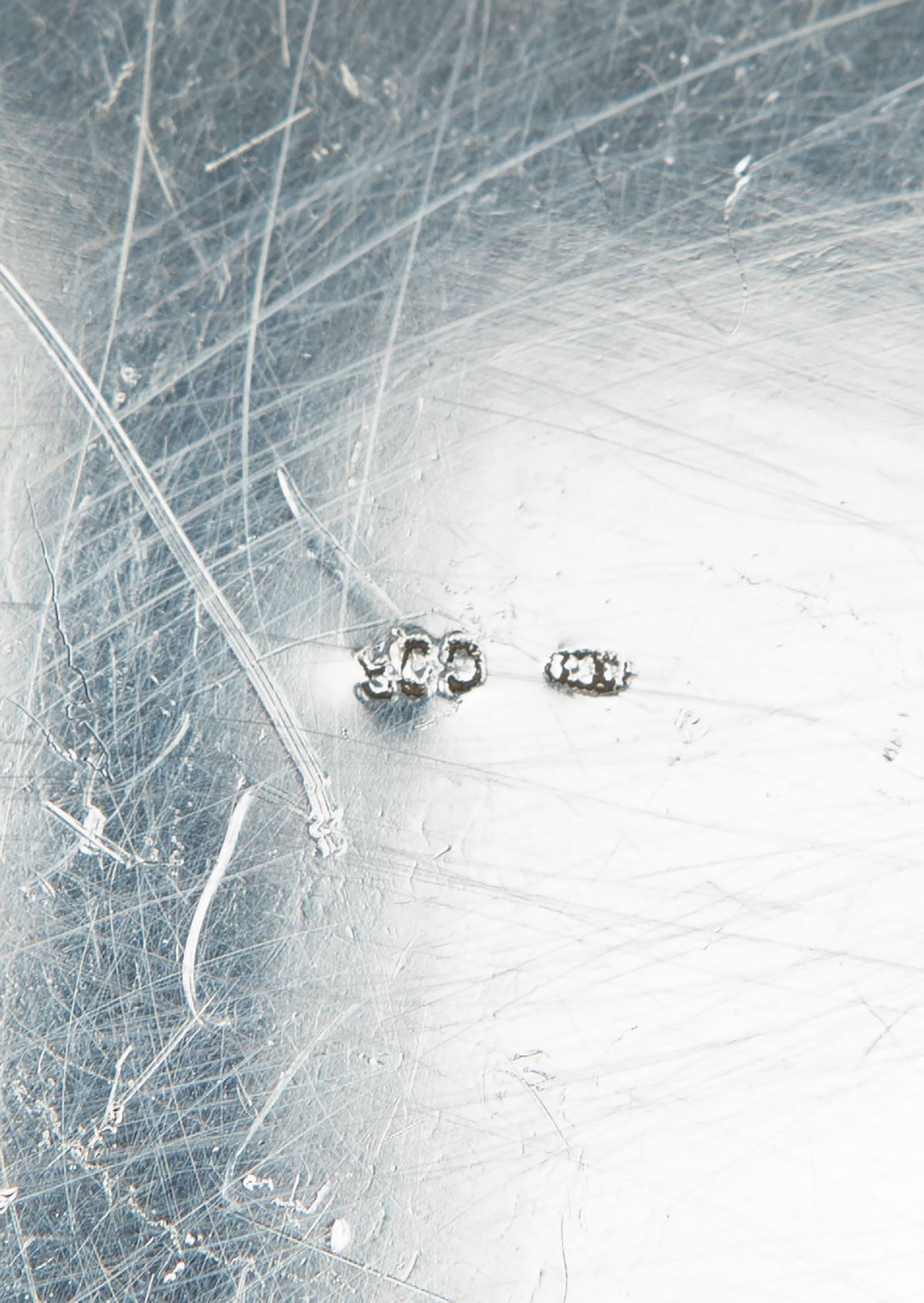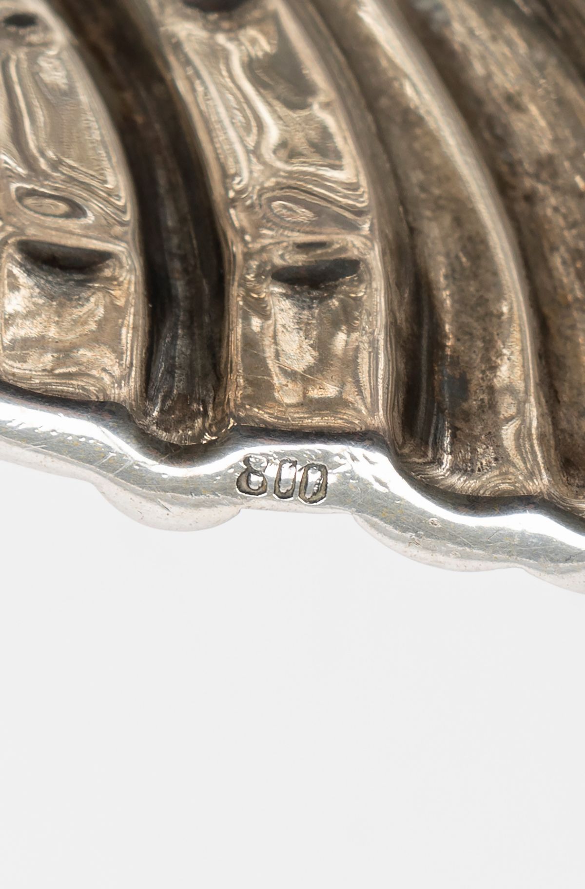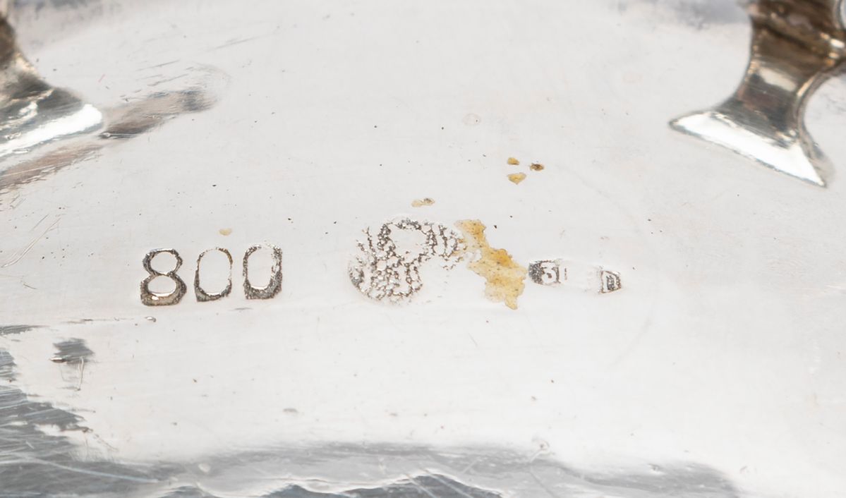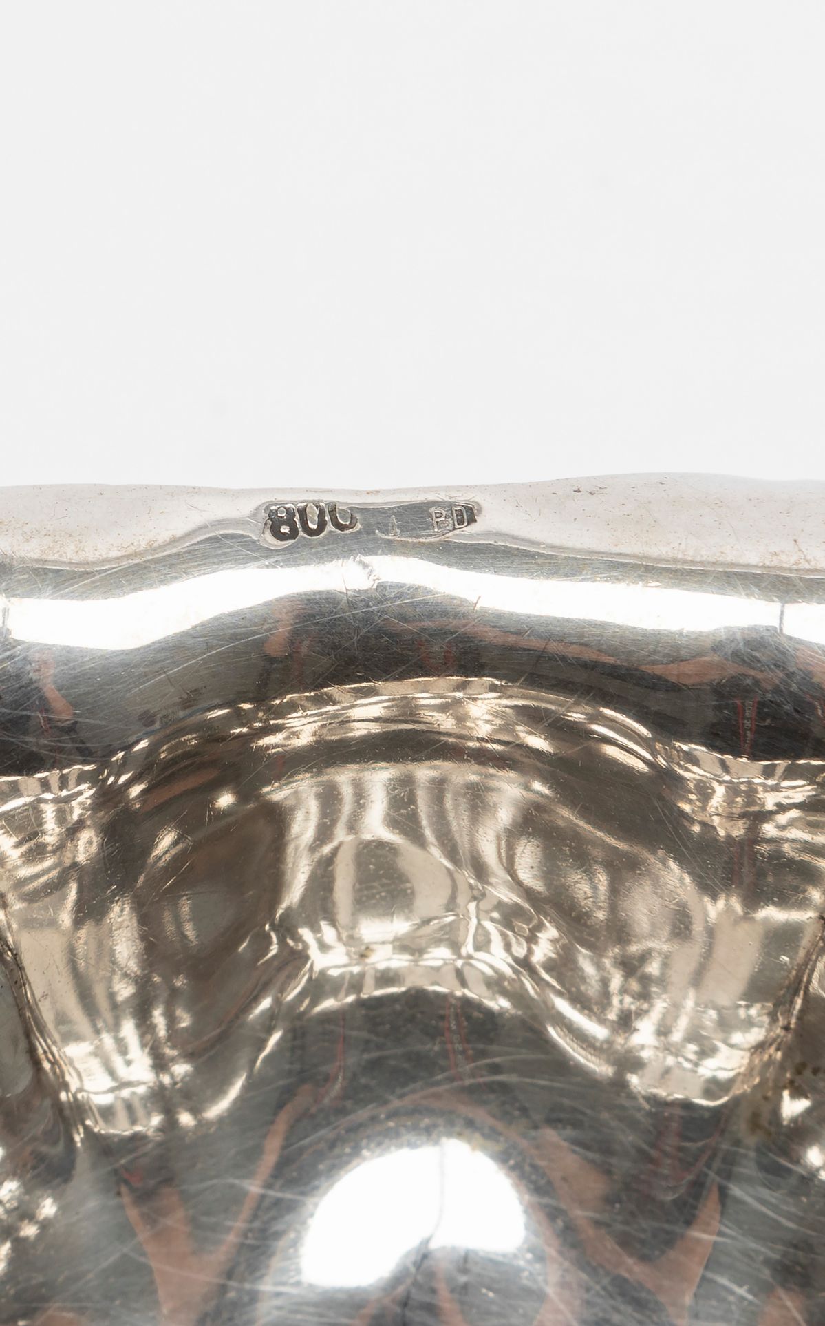 in argentoconsisting of two salt cellars, two bowls, one shell-shaped bowl, one box with lid, and an inkwell with glass