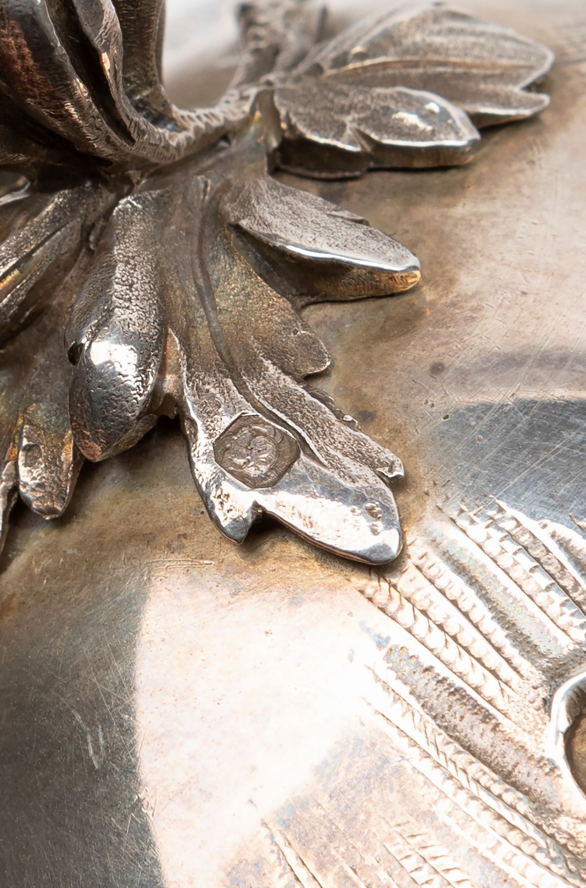 decorated with leaves and buds, with vermeil interior.