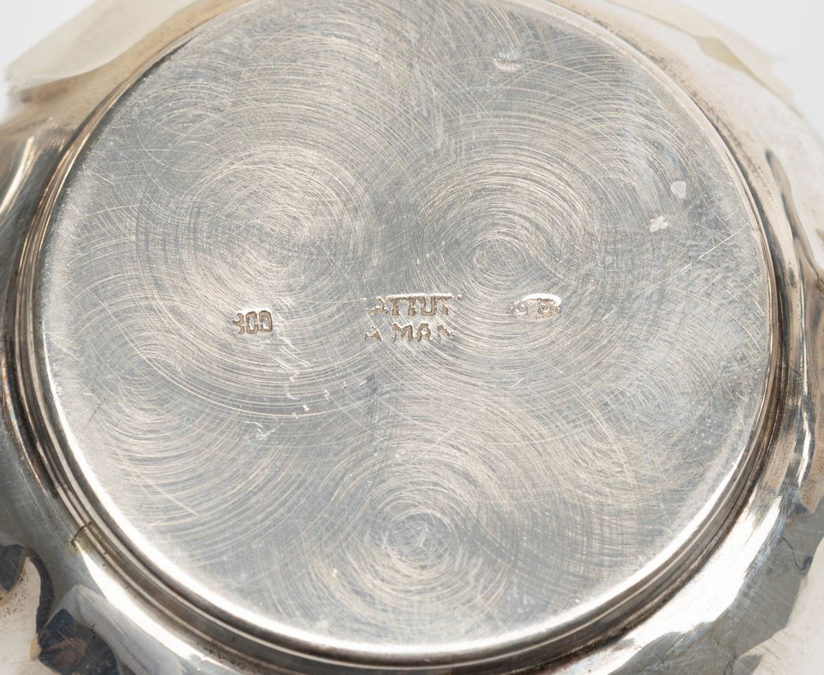 a teapot, two sugar bowls (with covers), a small vase, a small creamer, and a small tray with a spoon.