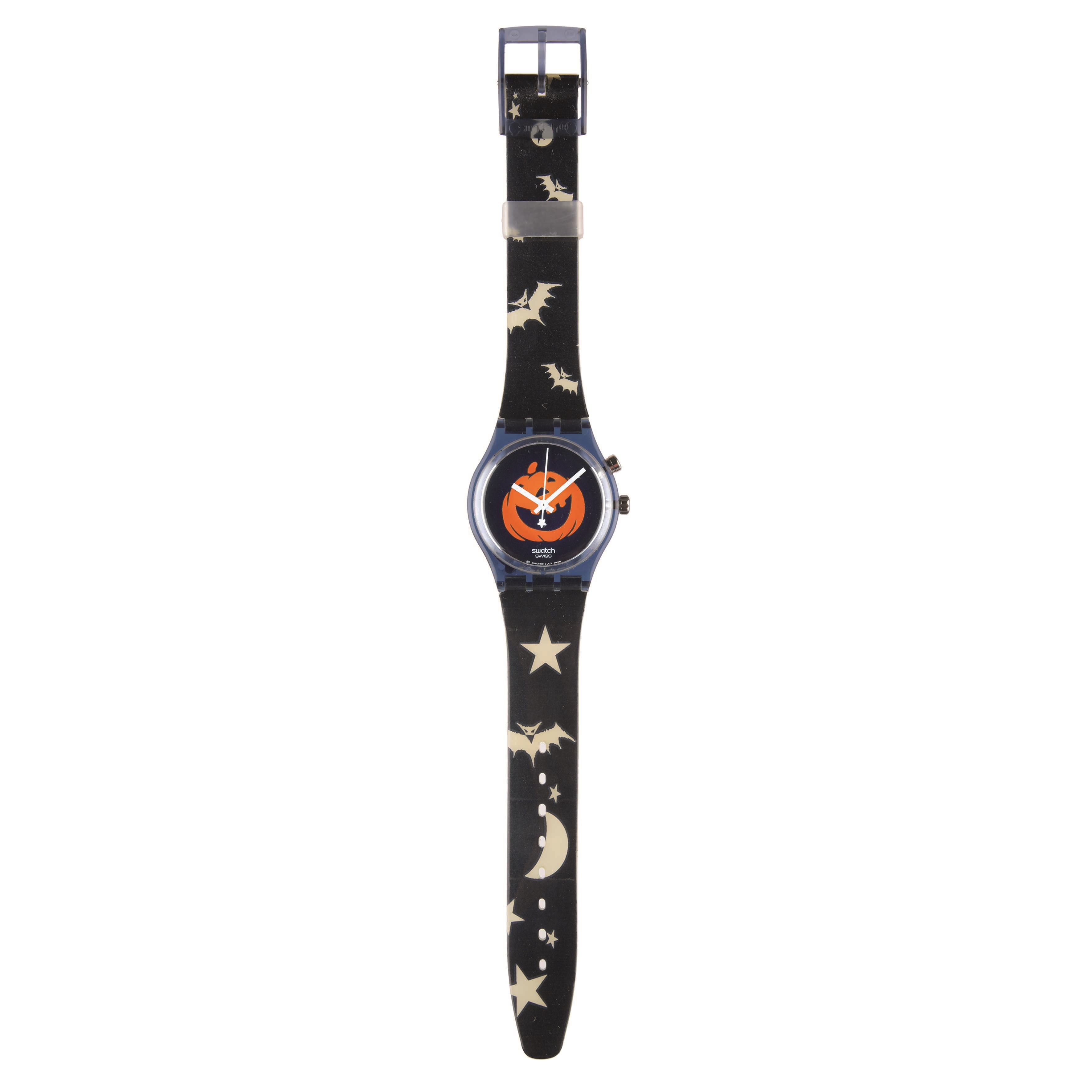 Swatch watches are presented as collector's items and are sold on a "seen and liked" basis. After 20 years both plastic and leather straps may have dried out and become too brittle to wear. Furthermore, as the mechanism and battery have not been verified, we cannot guarantee their correct functioning. We therefore suggest the potential buyer to view the lots of interest.