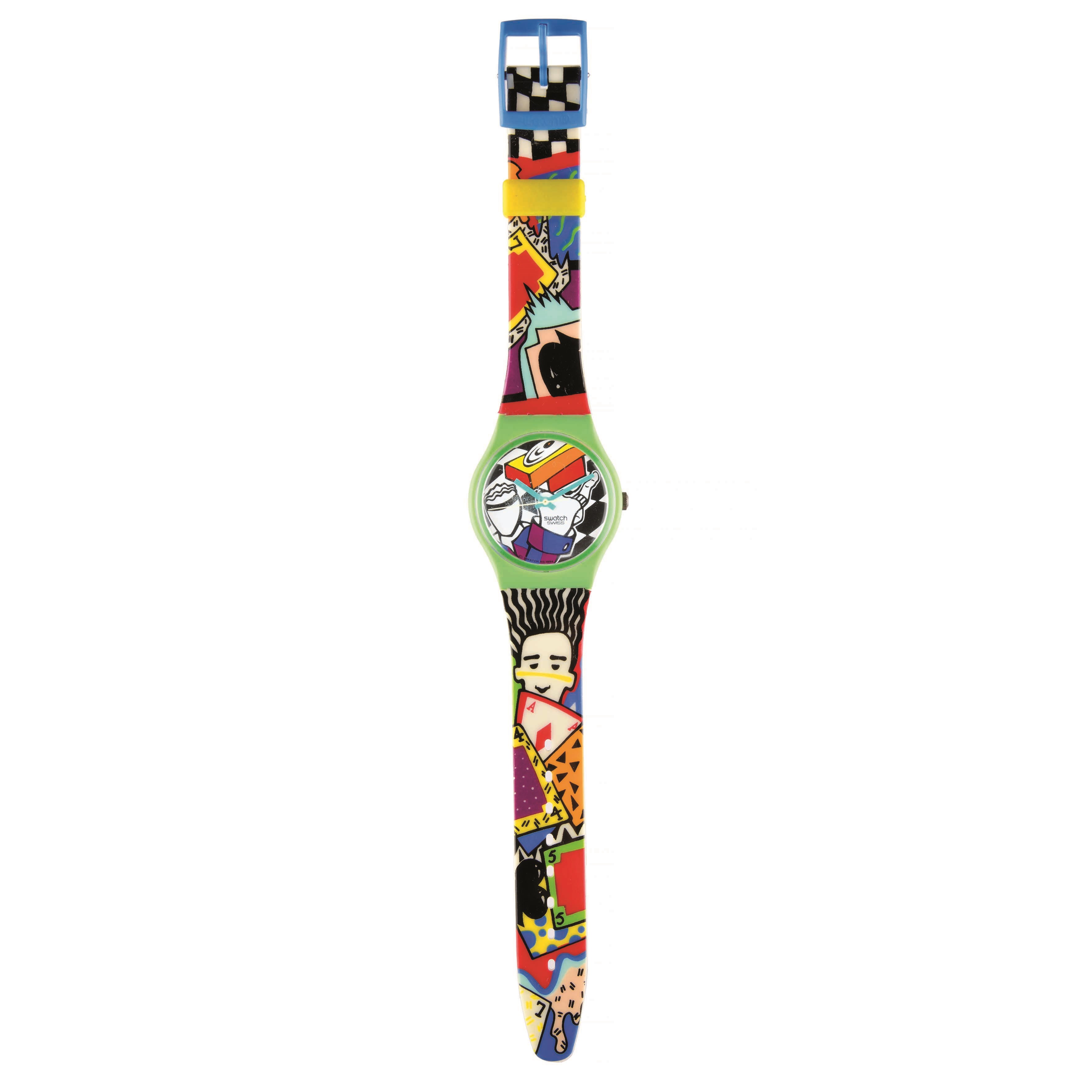 Swatch watches are presented as collector's items and are sold on a "seen and liked" basis. After 20 years both plastic and leather straps may have dried out and become too brittle to wear. Furthermore, as the mechanism and battery have not been verified, we cannot guarantee their correct functioning. We therefore suggest the potential buyer to view the lots of interest.