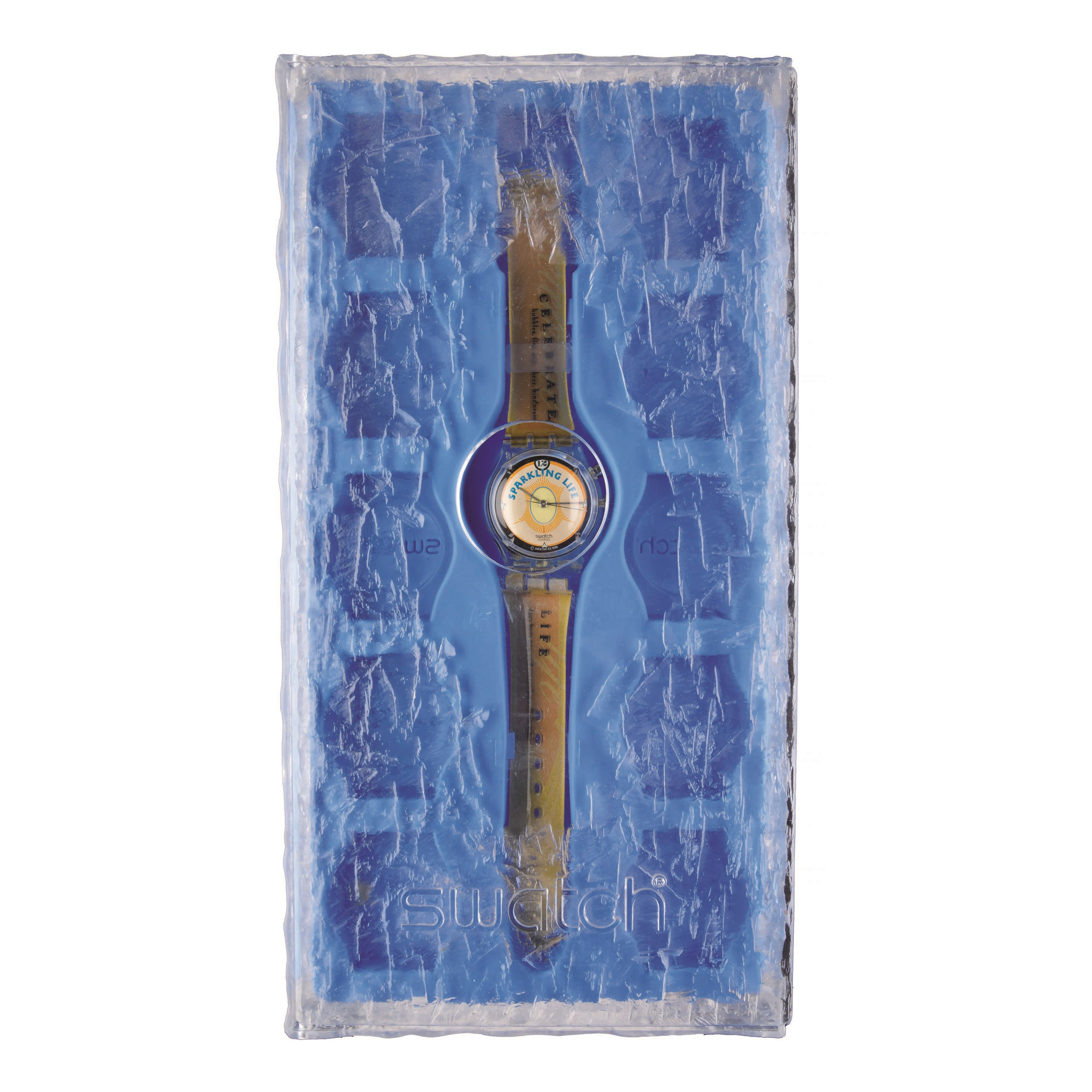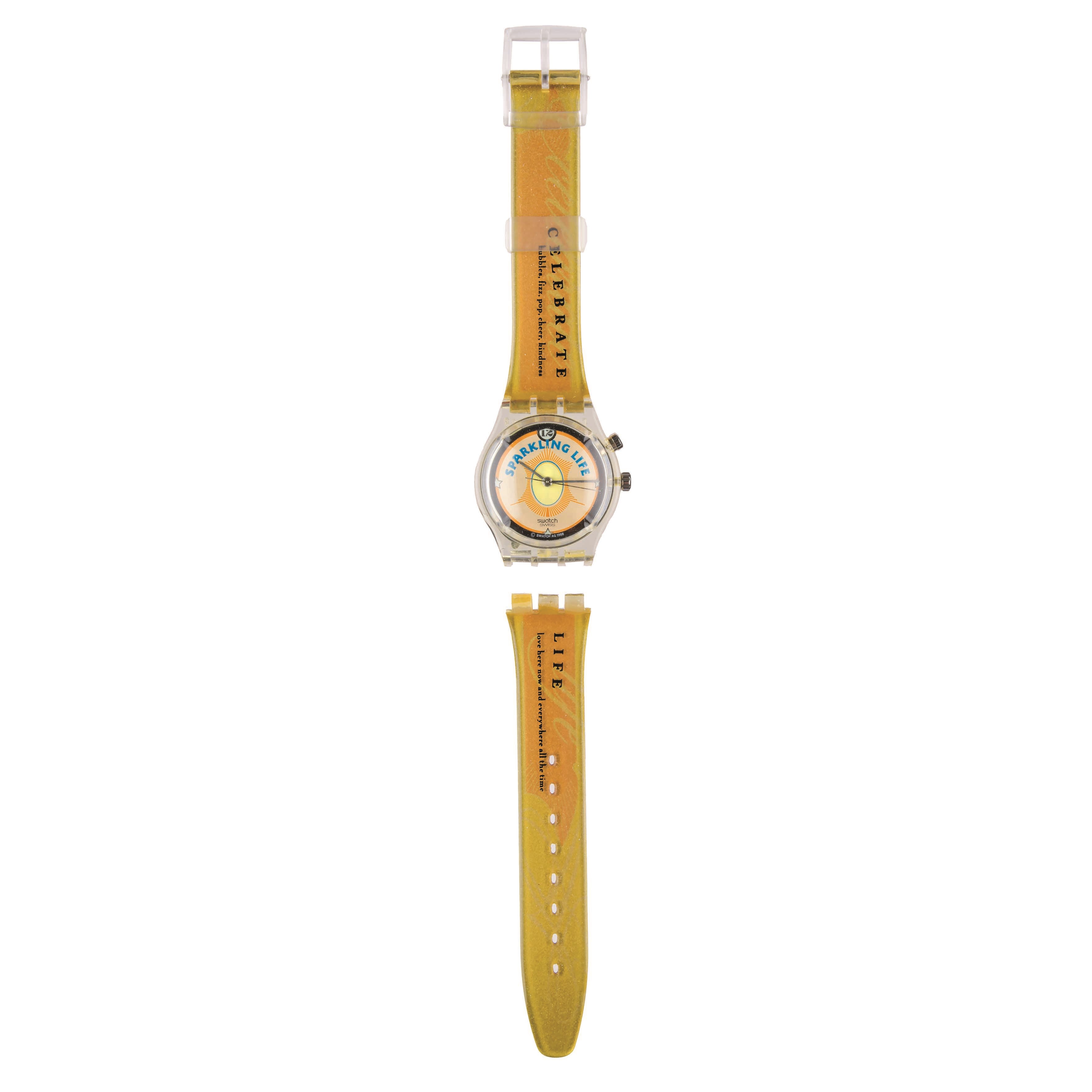 Swatch watches are presented as collector's items and are sold on a "seen and liked" basis. After 20 years both plastic and leather straps may have dried out and become too brittle to wear. Furthermore, as the mechanism and battery have not been verified, we cannot guarantee their correct functioning. We therefore suggest the potential buyer to view the lots of interest.