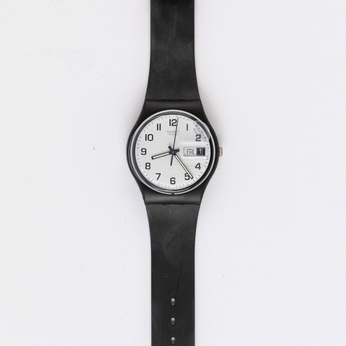 Swatch watches are presented as collector's items. After 20 years both plastic and leather straps may have dried out and become too fragile to wear as we cannot guarantee the durability of the strap. The sale is subject to "inspected and found to be acceptable". Each lot is sold as is and must be examined by the prospective buyer.