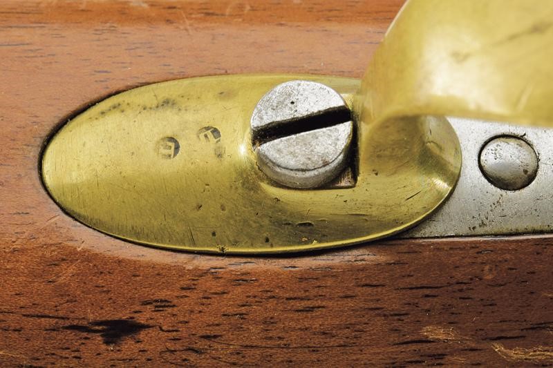 Smoothbore, round, 18 mm cal. barrel, with octagonal base marked "F", "727", "Cd 17. 6 A" and other marks, foresight; tang with model, rear sight and marks. Lock converted to percussion marked "M.re R.le de Maubeuge" and two other marks. Working mechanism. Fruitwood stock; brass mounts. Iron suspension ring and ramrod. Stock and ramrod with matching serial number. This lot is imported from a non-EU country and incurs additional taxes beyond the auction house commission and the V.A.T. Consequently, the total Buyer’s Premium, inclusive of all taxes, amounts to 35%.