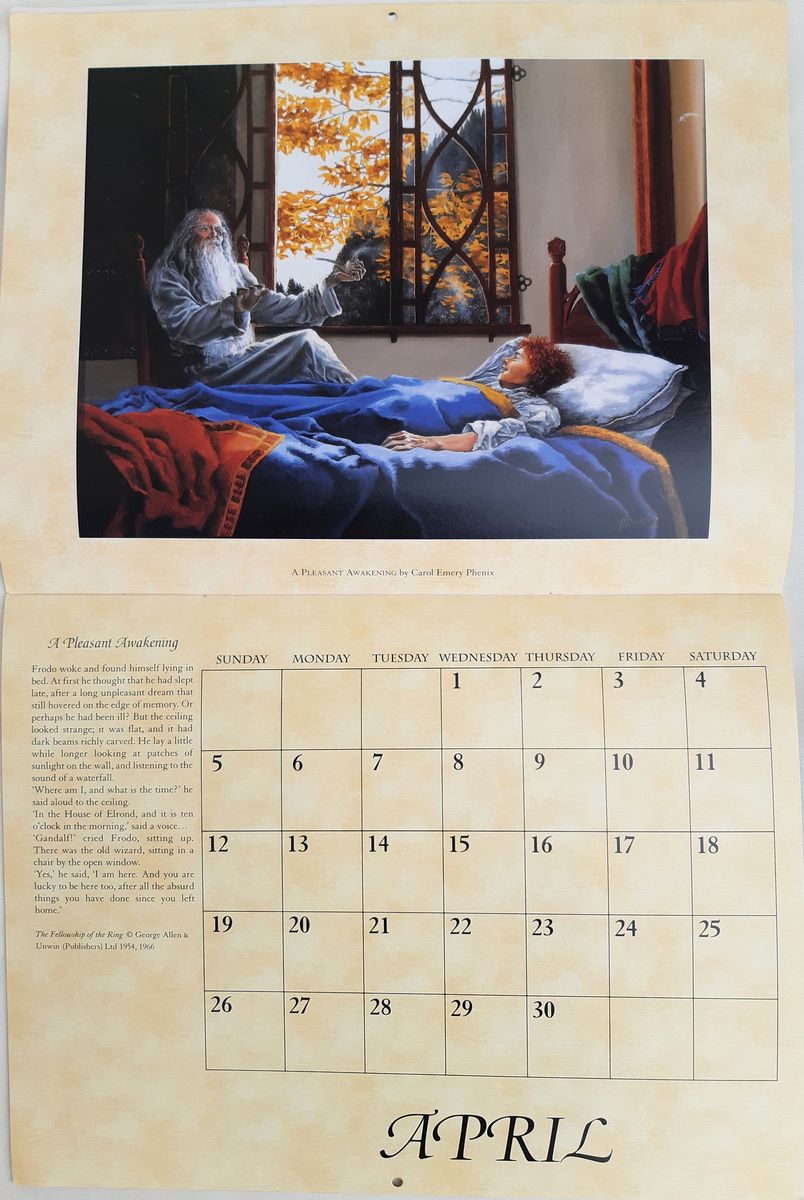 Preliminary drawing made by Emery Phenix for her famous painting "A Pleasant Awakening", published for the first time in the volume "Realms of Tolkien" by Harper Collins in 1996 and later in the calendar "The Tolkien Calendar 1998", in April by Harper Collins in 1997. Signed.
