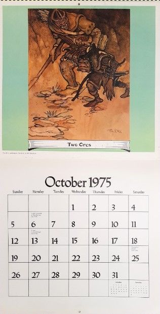 Recreation made by Kirk of his famous painting entitled "Two Orcs", published in The JRR Tolkien Calendar 1975 by Ballantine Books in 1975. On the back the author described the illustrated scene from "The Return of the King". Signed.