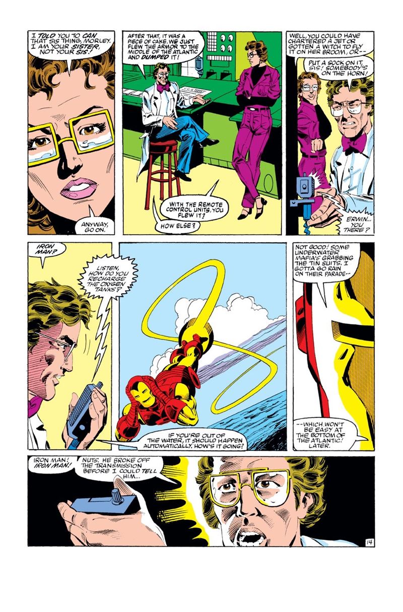 Original comic art made by McDonnell for "The Treasure of Red and Gold," published in Iron Man n. 175 on page 14 by Marvel in 1983. Photocopies are present in the second panel.