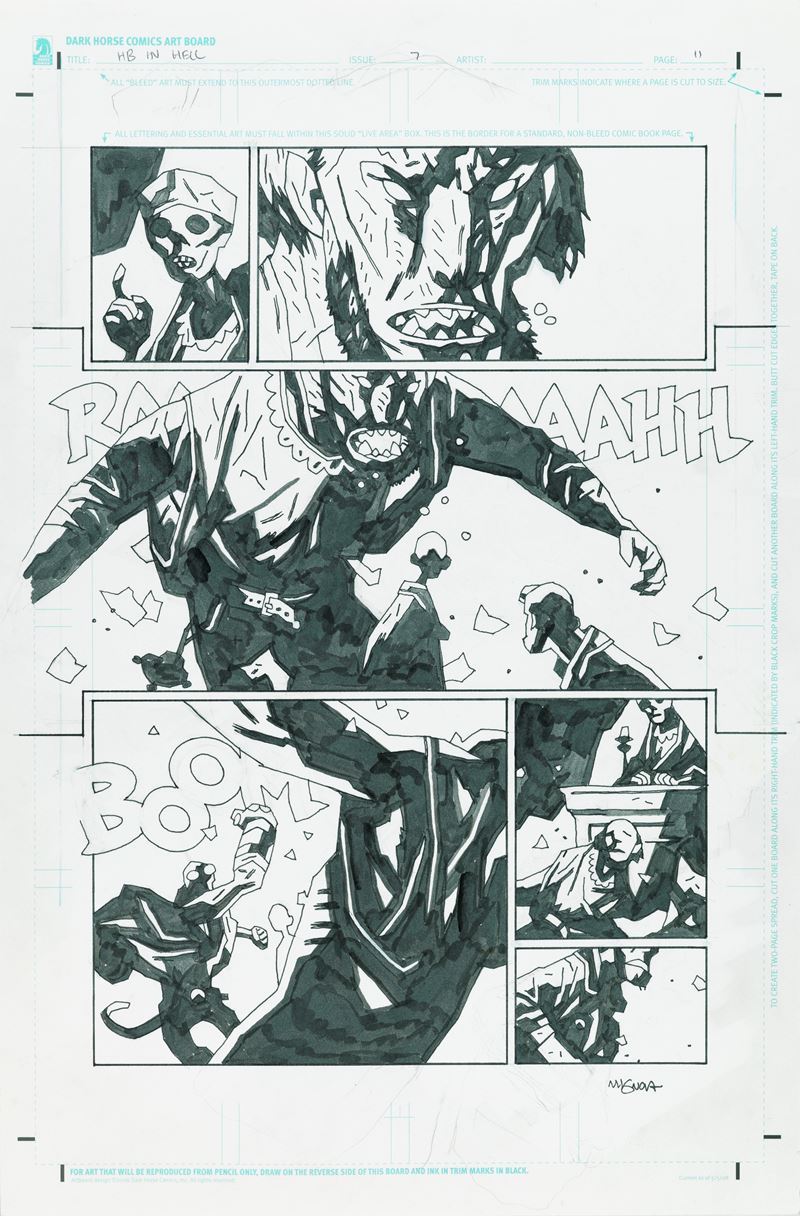 Original comic art made by Mignola for "The Hounds of Pluto", published in Hellboy in Hell n. 7 on page 11 by Dark Horse in 2015. Signed.