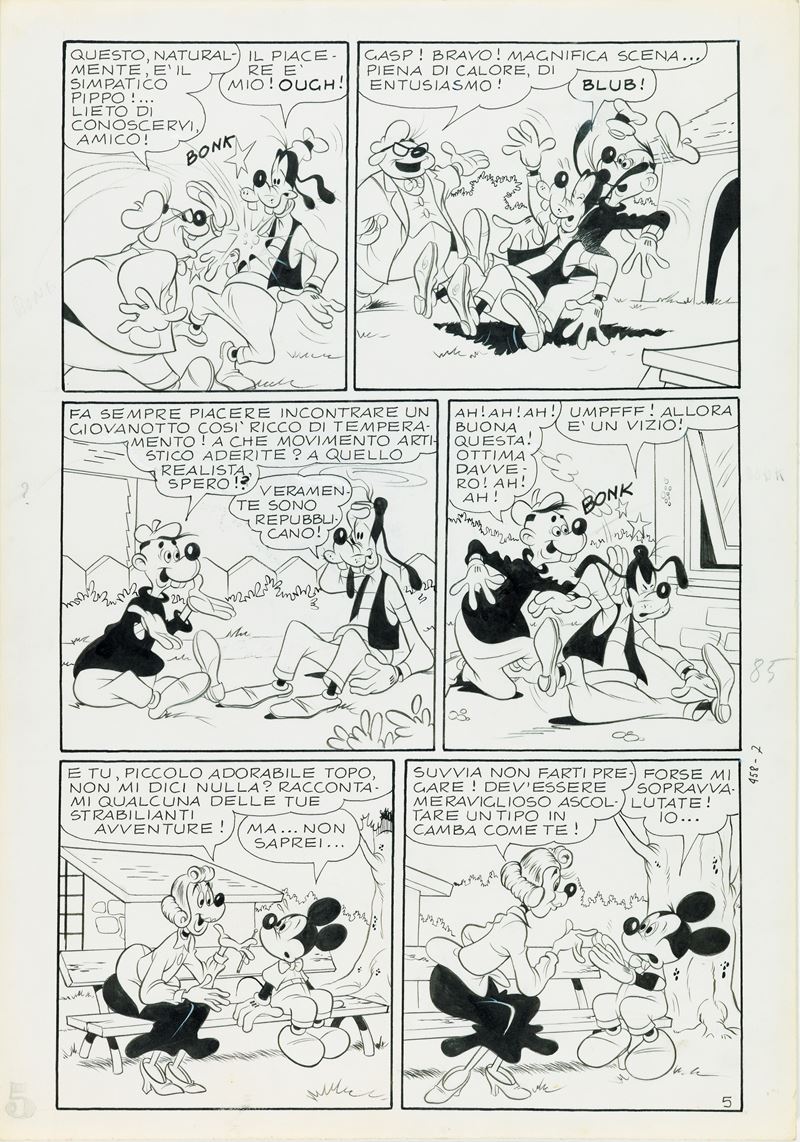 Original comic art made by Asteriti for "Topolino e la città di cartone," published in Topolino n. 458, page 5, September 1964.