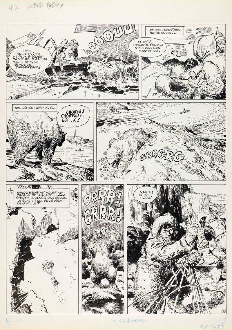 Original comic art made by Parras for page 3 of the story "Peary l'obstiné" published in France in the magazine Pif Gadget n. 753 in 1983.