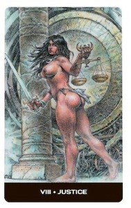 Preliminary drawing made by Serpieri for "Justice" the eighth card of the major arcana in his celebrated Serpieri Tarot deck, published by Lo Scarabeo Edizioni in 2022. It's an adult spell, where space and the future actually define the human subconscious. This Tarot deck, made by the master of eroticism, is set in a dystopian science fiction setting, where humanity is trying to escape the horrors of the mechanical cage it has built by reconnecting with its primal instincts. Nudity and sex are themselves symbols of humanity's struggle to confront and connect with its deepest emotions. Signed.
