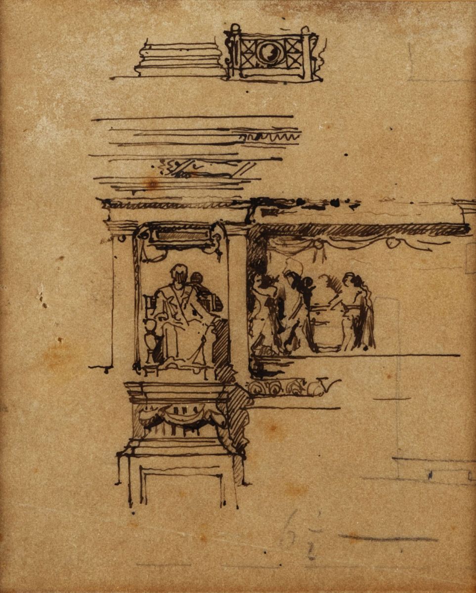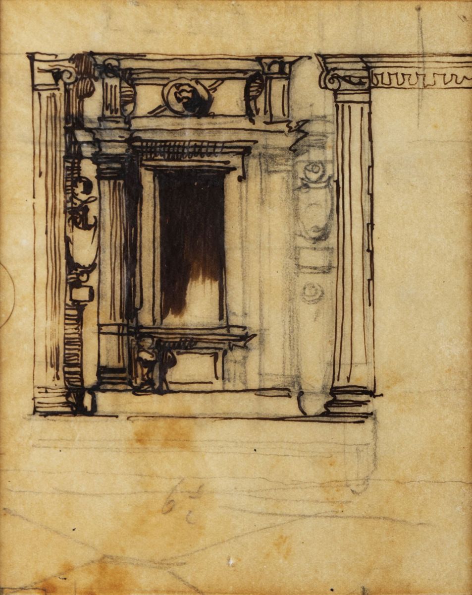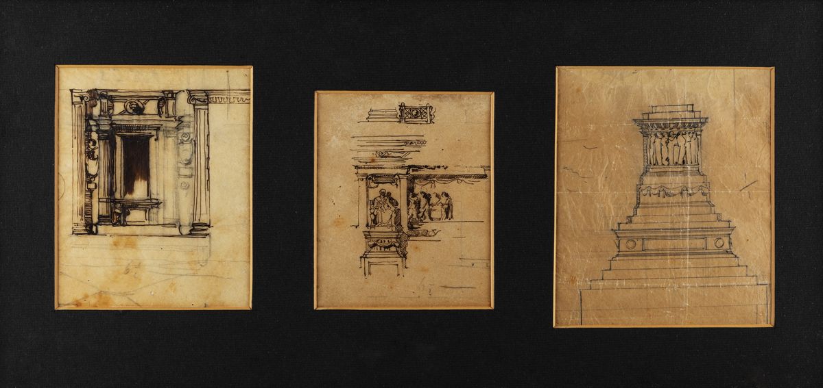Three architectural sketches for the Monument to Vittorio Emanuele II in Rome, mounted in a single frame