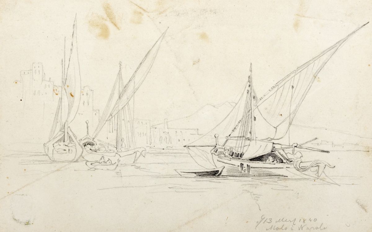 dated and titled lower right: 13 Mars 1840 / Molo à Napole