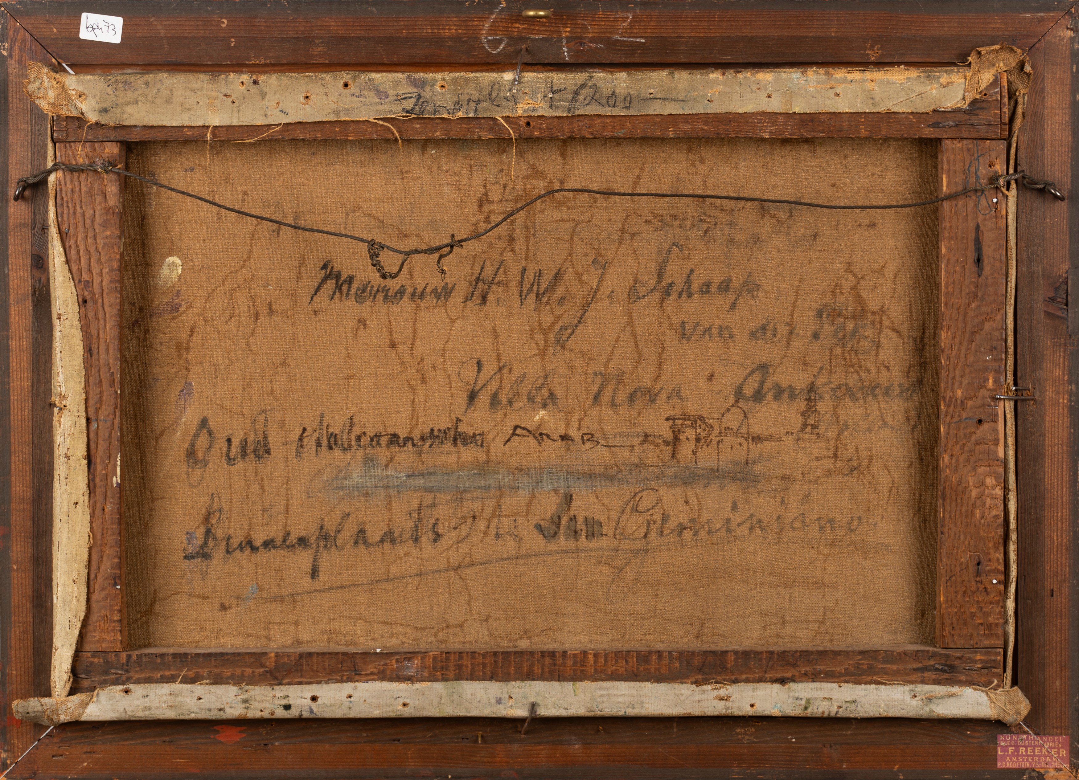 On the back, on the canvas, handwritten notes by the artist with signature, artist's address (Villa Nova) and references to the painting.