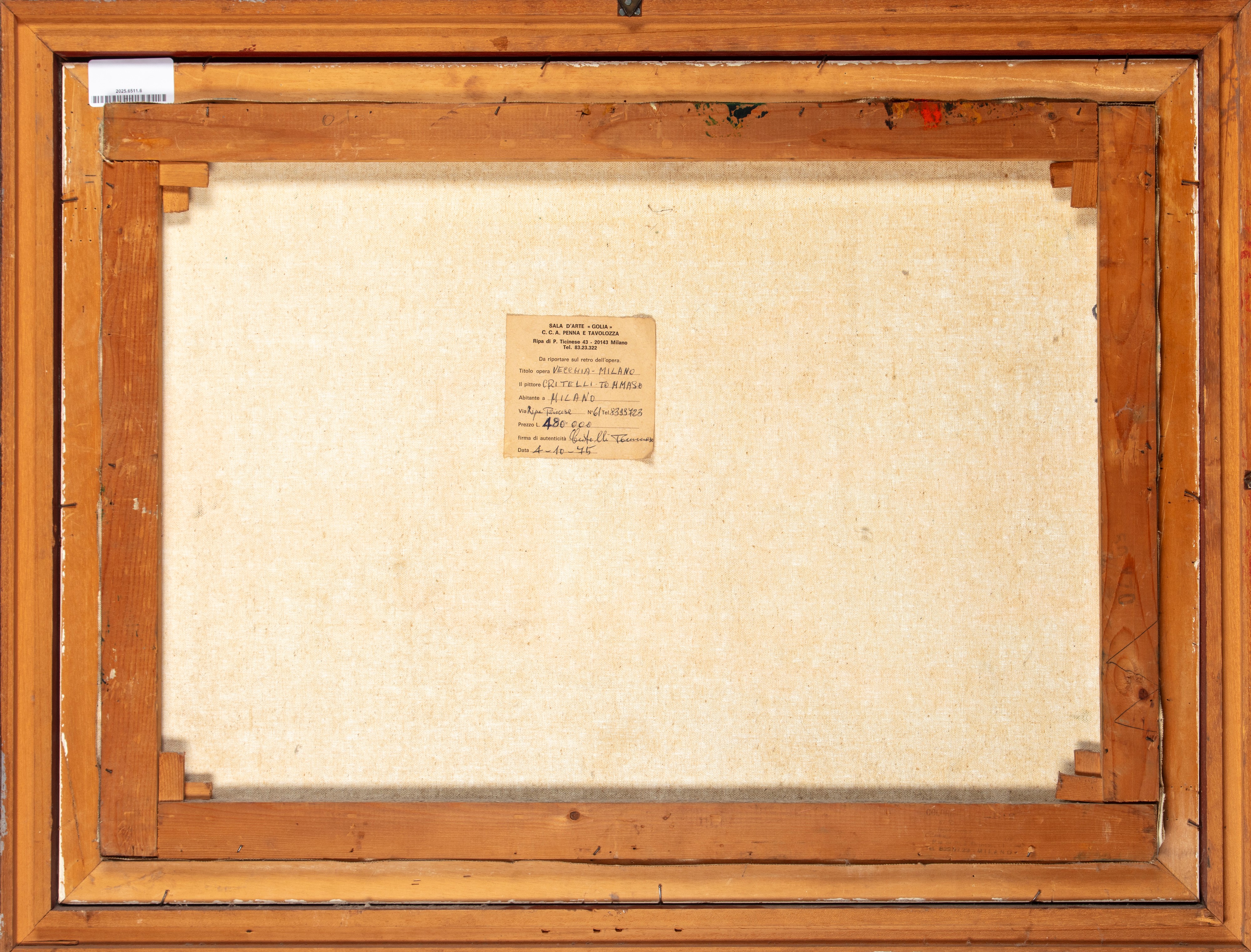 on the back, on the canvas, label of the Sala d'Arte Golia, Milan