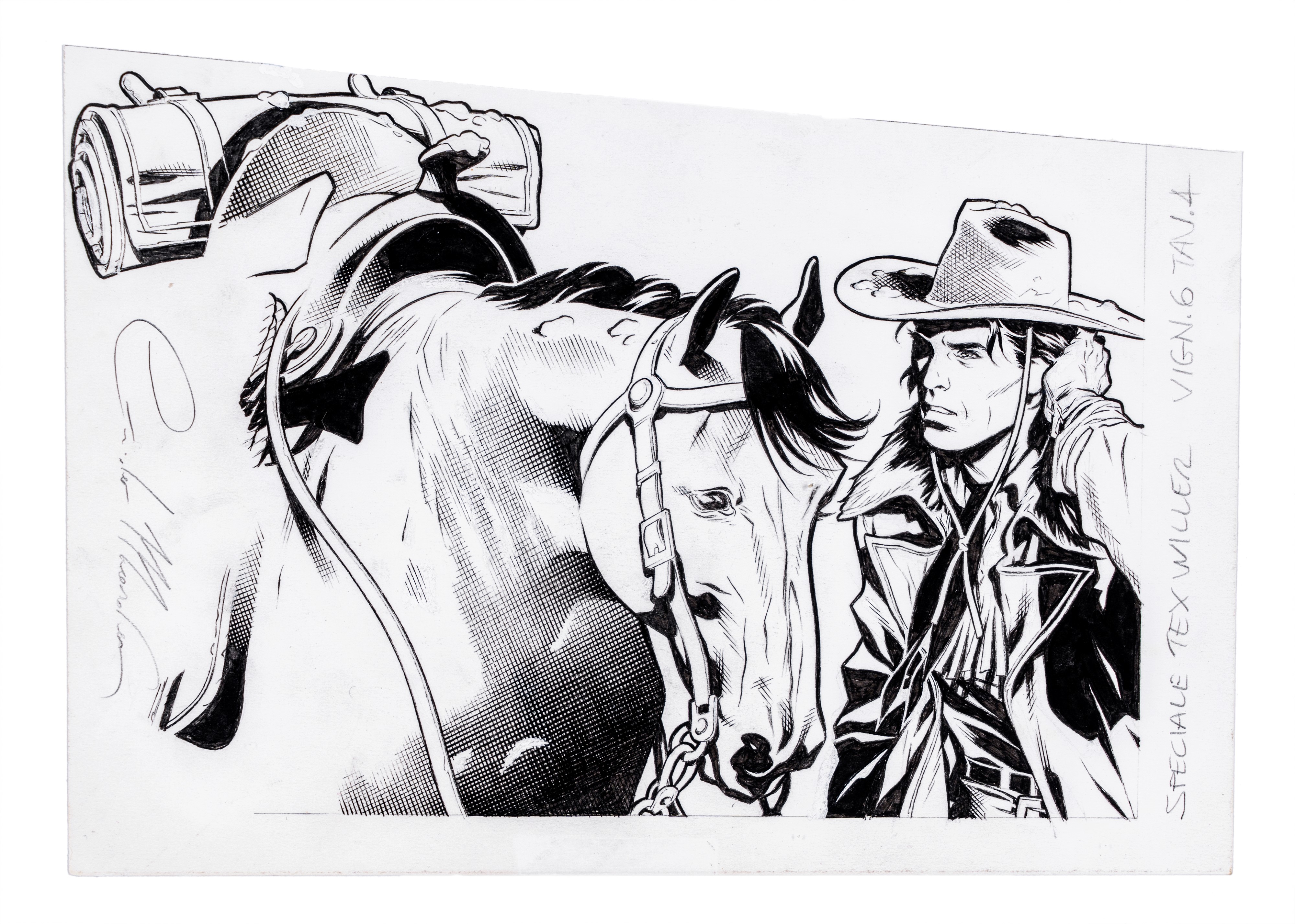 Lot composed of an original comic strip and a vignette created by Masala for a Tex Willer special. Both are signed.