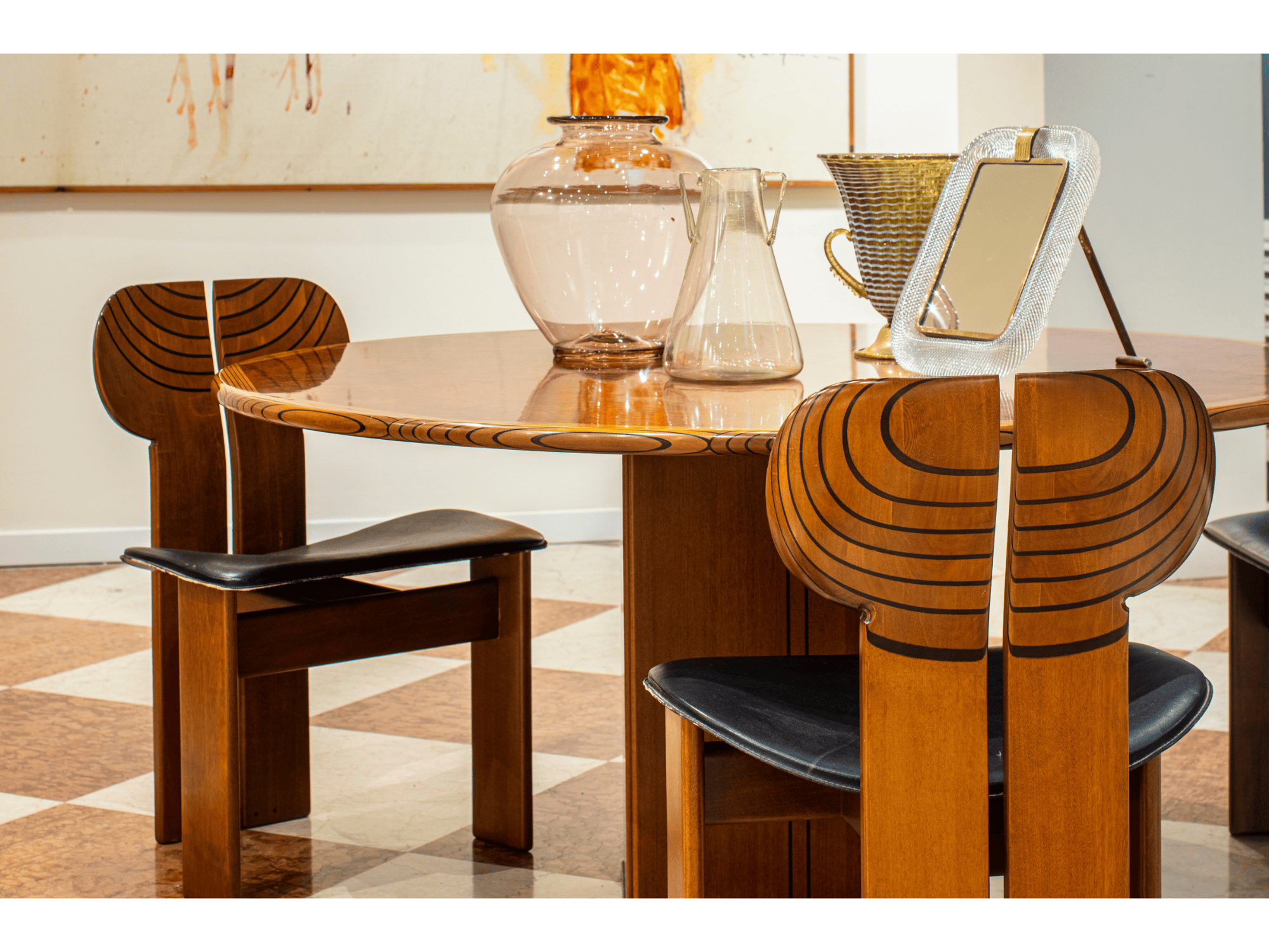 Notevole anche la selezione di vetri veneziani, datati tra il 1910 e il 1970, tra cui emerge una rara scacchiera disegnata da Pietro Bigaglia (Lotto 66, stima € 25.000 – 30.000) figura pionieristica dell’arte vetraria muranese. Del 1960 è invece il progetto residenziale di Casa PBH (Lotti 28–39), a firma Gianfranco Frattini con arredi special commission e pezzi unici.