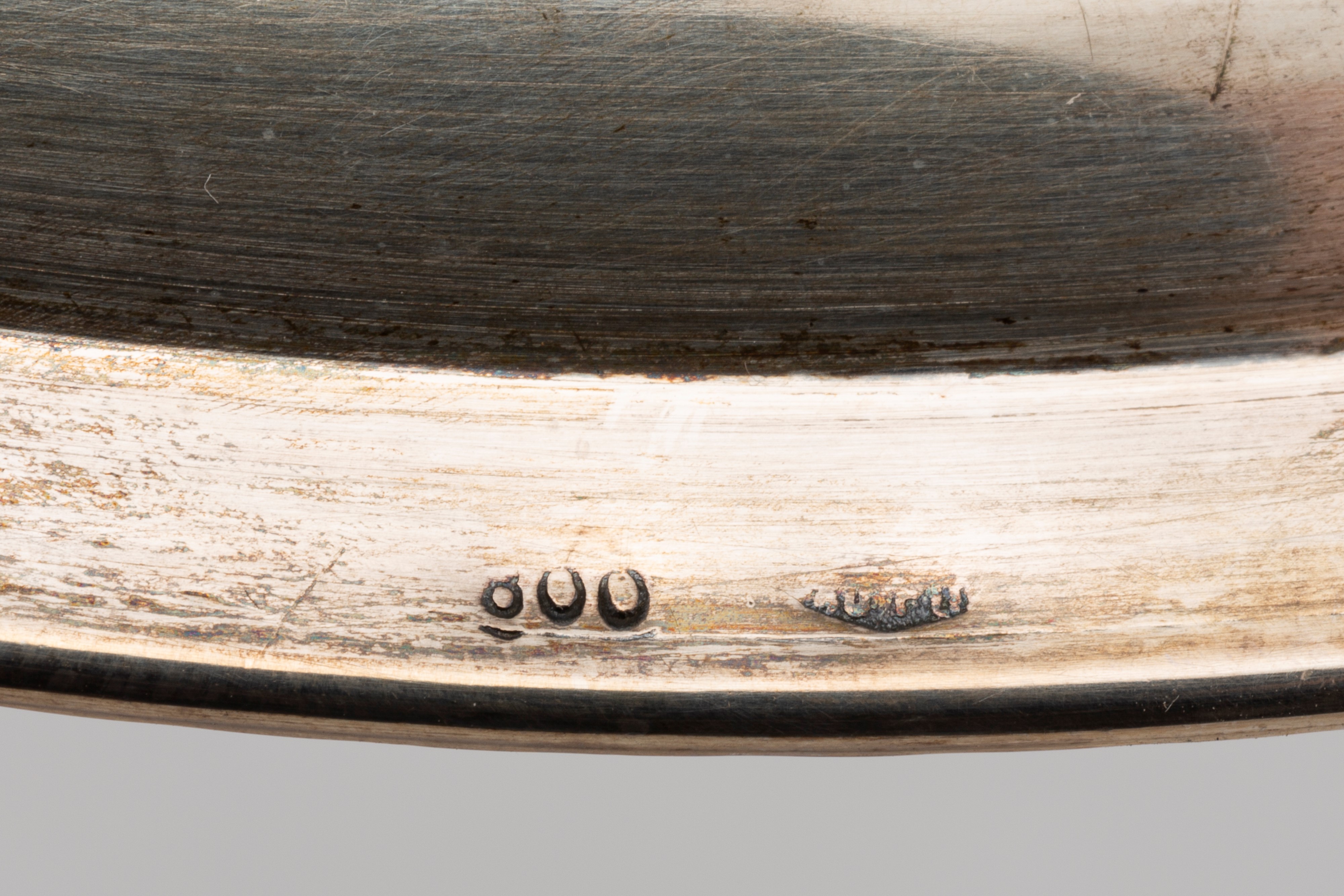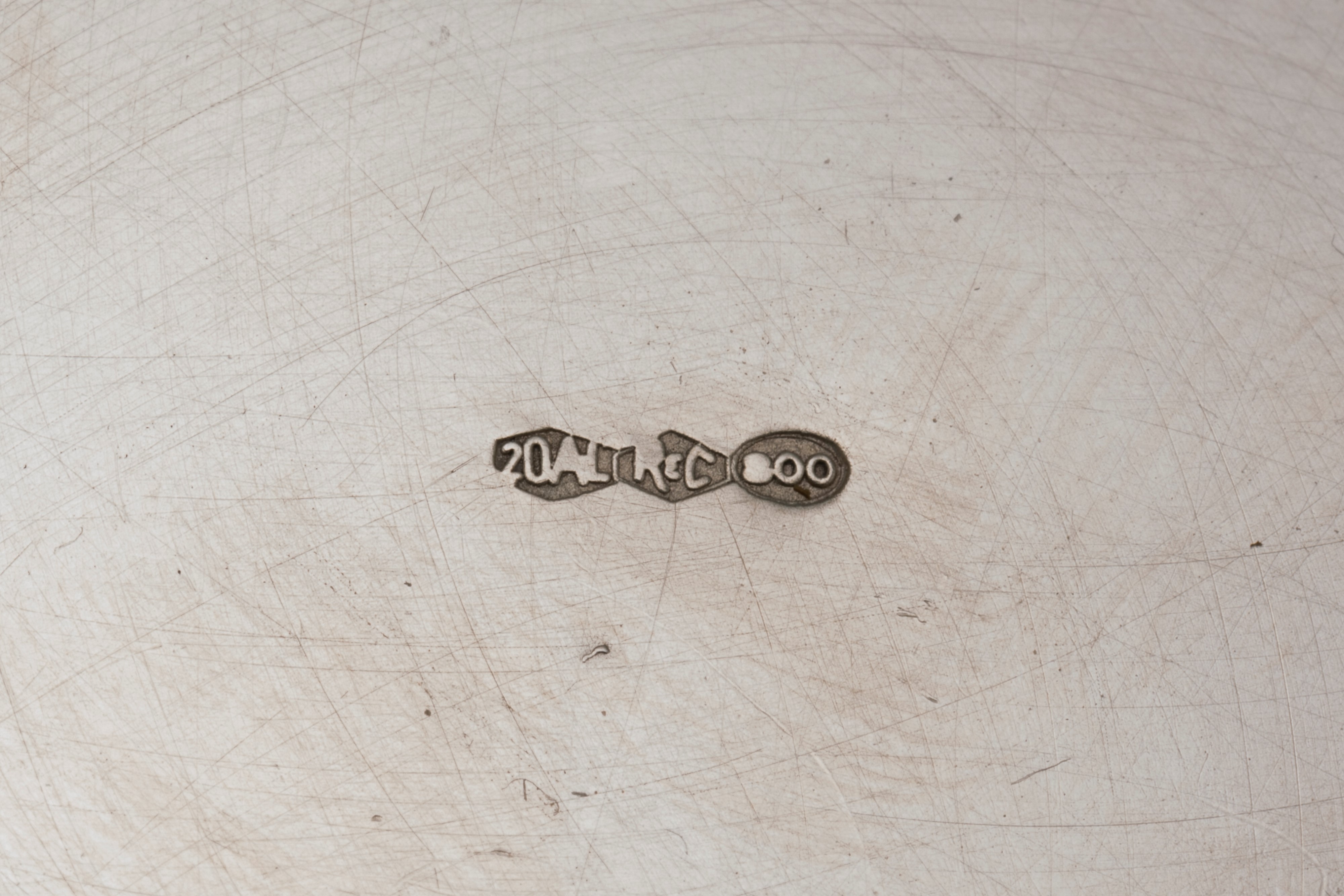 in argentocomposto da un piatto circolare con bordo a palmette (d cm 25,50), due centrotavola polilobati con decori a rilievo (l cm 21,00 e 23,00), una zuccheriera sbalzata con anse a valva di conchiglia , presa del coperchio a pigna (h cm 9,20).