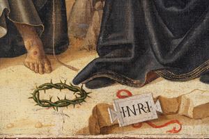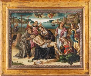 La misteriosa figura di Giovanni Francesco Crivelli, pittore ancora poco noto ma attivo tra la Romagna e le Marche all'inizio del Cinquecento, è stata studiata e individuata per la prima volta da Federico Zeri. Lo studioso, a partire dagli anni '80 del Novecento, aveva raccolto in un'apposita cartella del suo archivio, alcune foto di opere riconducibili a Giovanni Francesco Crivelli, due delle quali firmate. Una è proprio la Deposizione qui offerta, che Zeri indicava come di ubicazione sconosciuta e che ora compare per la prima volta sul mercato.
