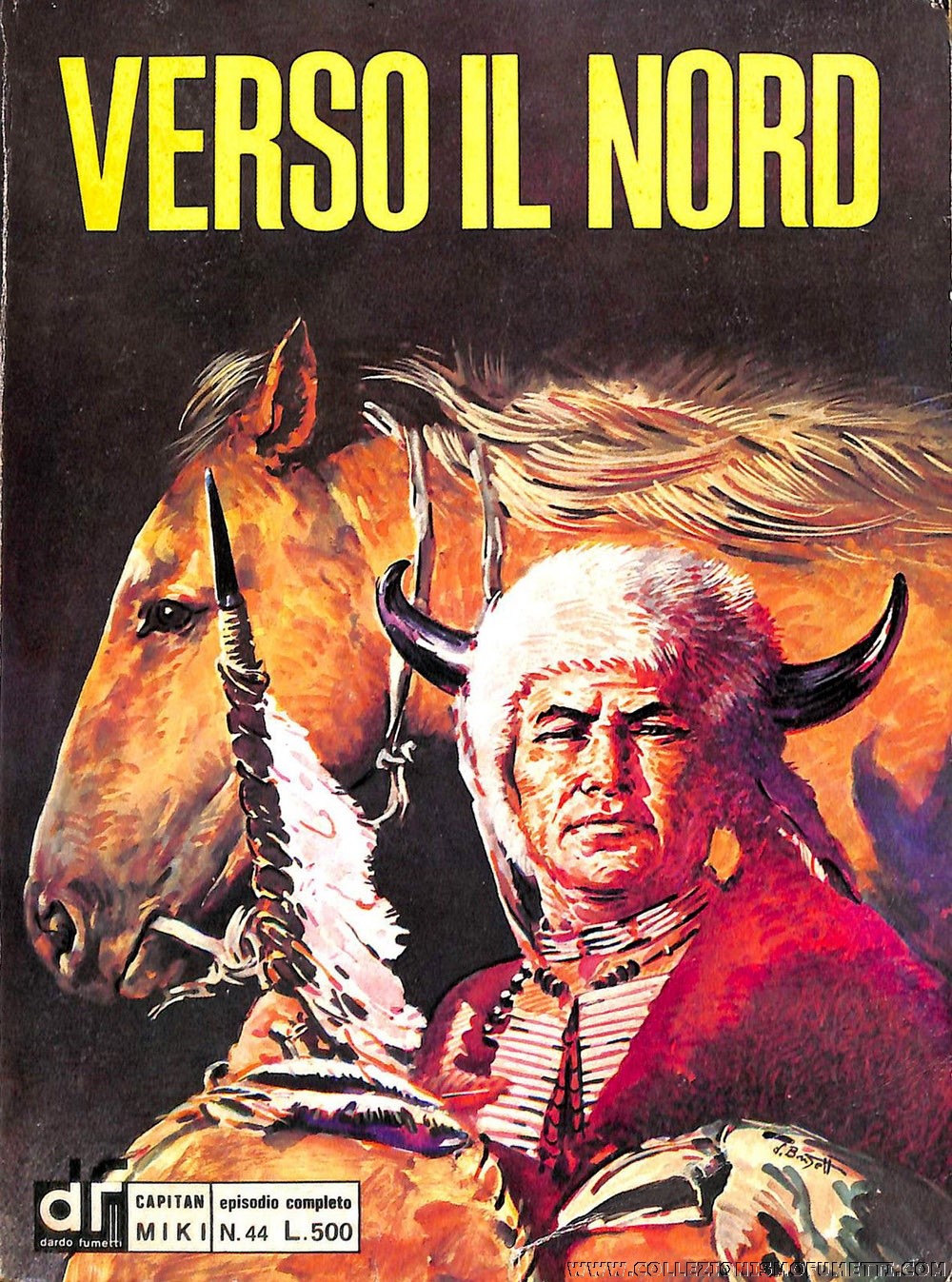 Originale di copertina realizzato da Busett per "Verso il Nord", edito nella Collana Freccia n. 44 dalla Editrice Dardo nel 1977. Fori di affissione ai margini. Firmato.