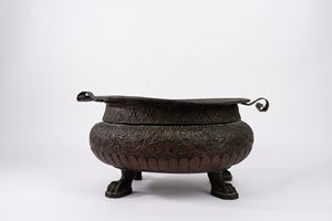 decorato con motivi baccellati e girali vegetali, con zampe leonine