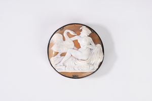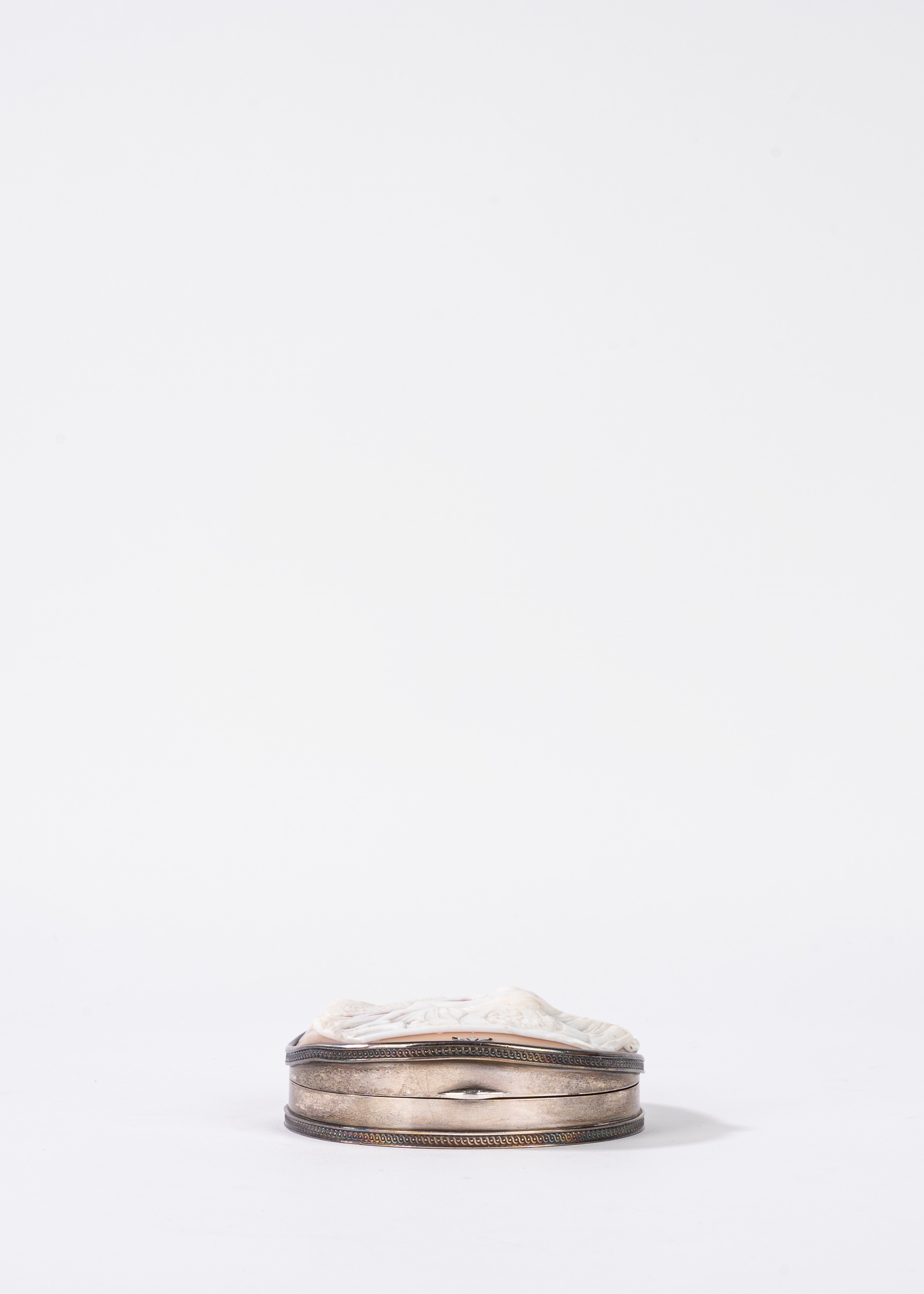 Scatola in argento con cammeo sul coperchio raffigurante Leda e il cigno, Francia, fine secolo XIX