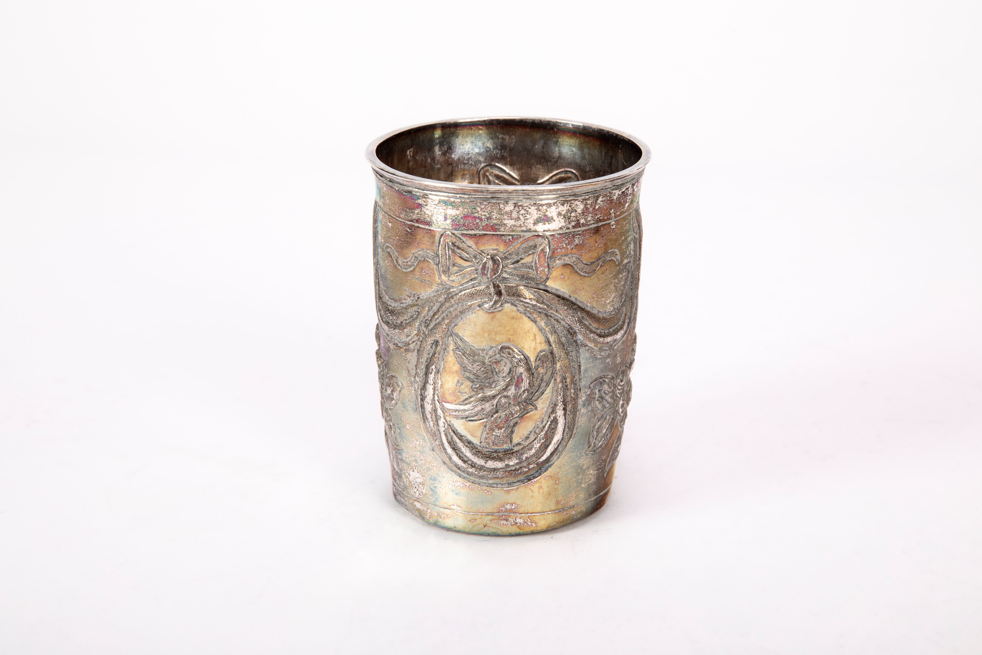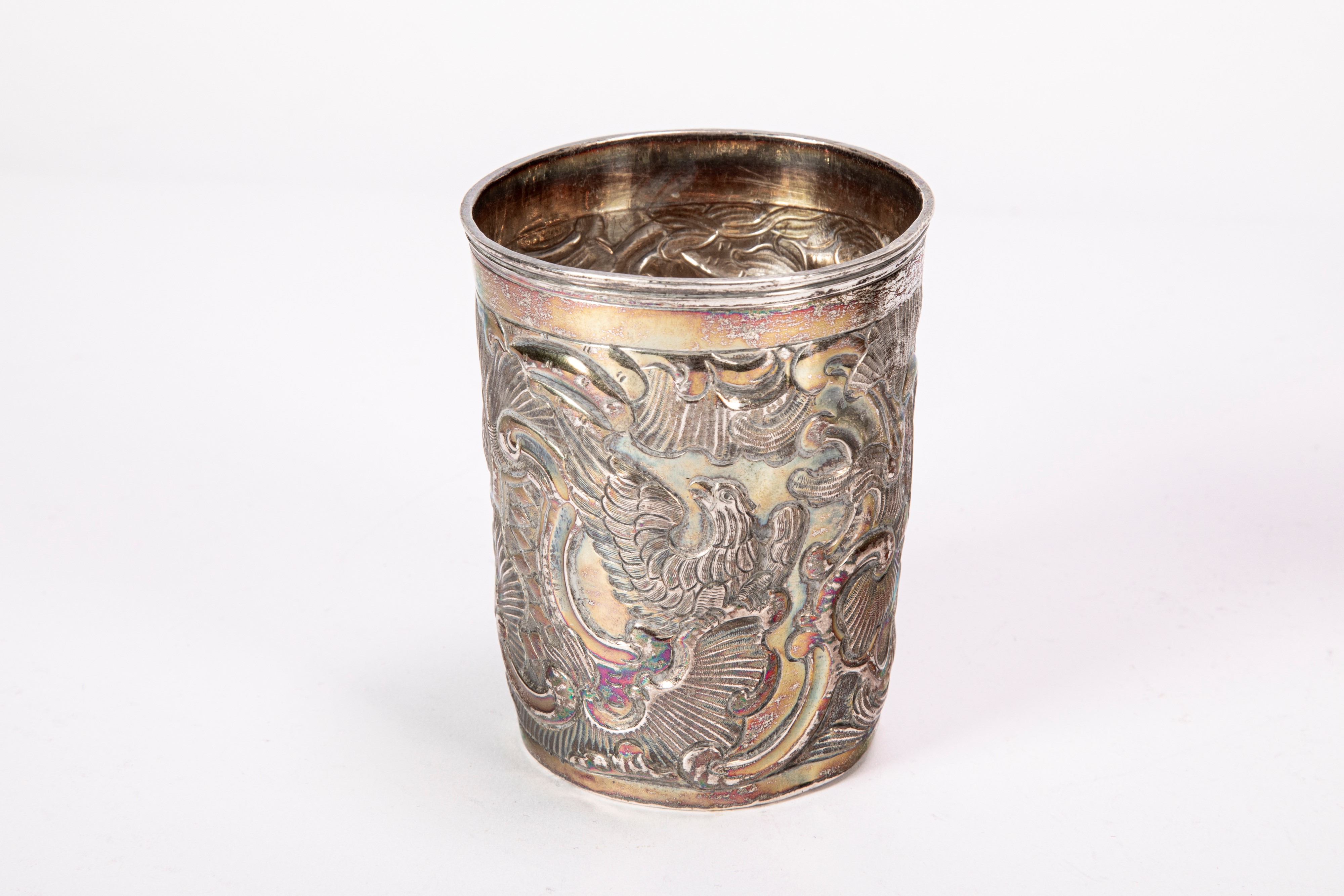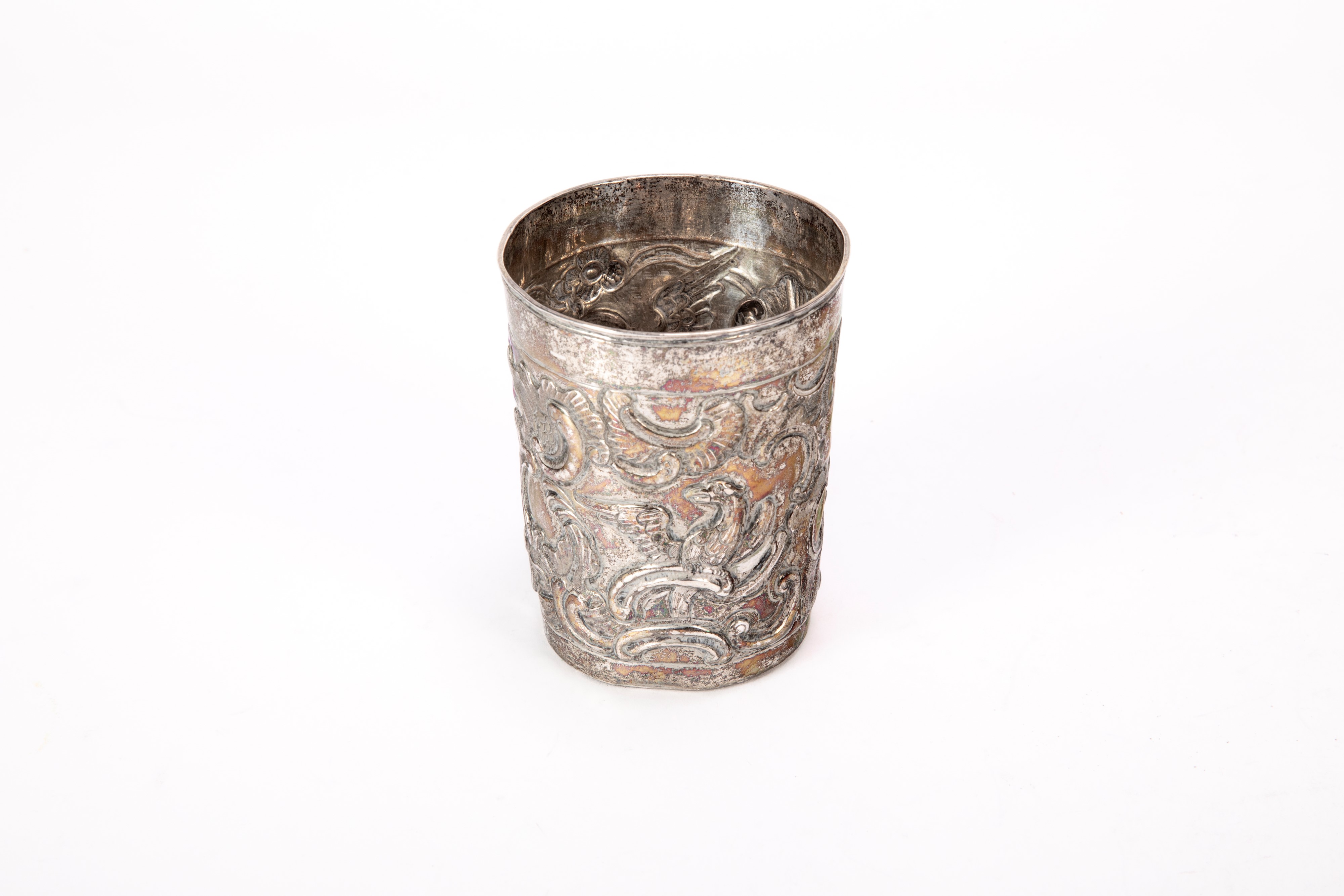 in argentodi forma cilindrica con decori sbalzati e incisi a uccelli rapaci e volute, misure diverse.