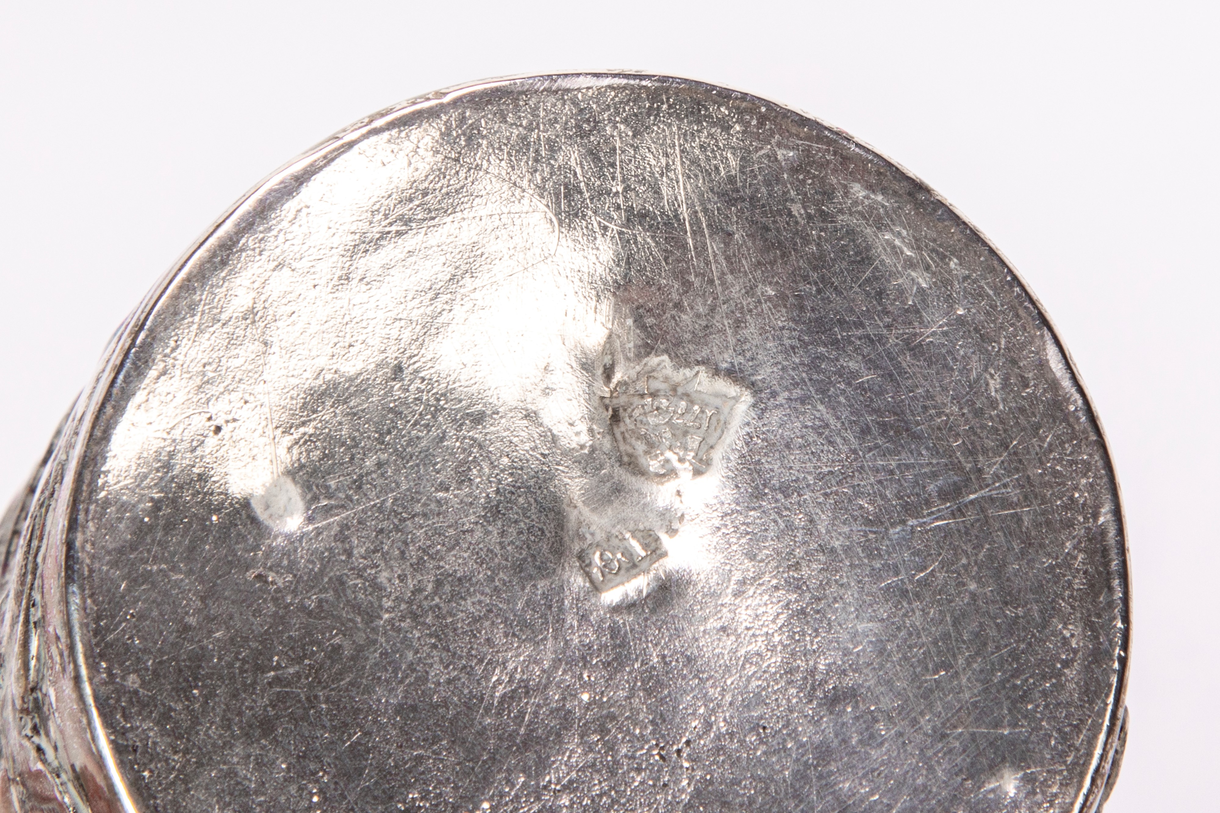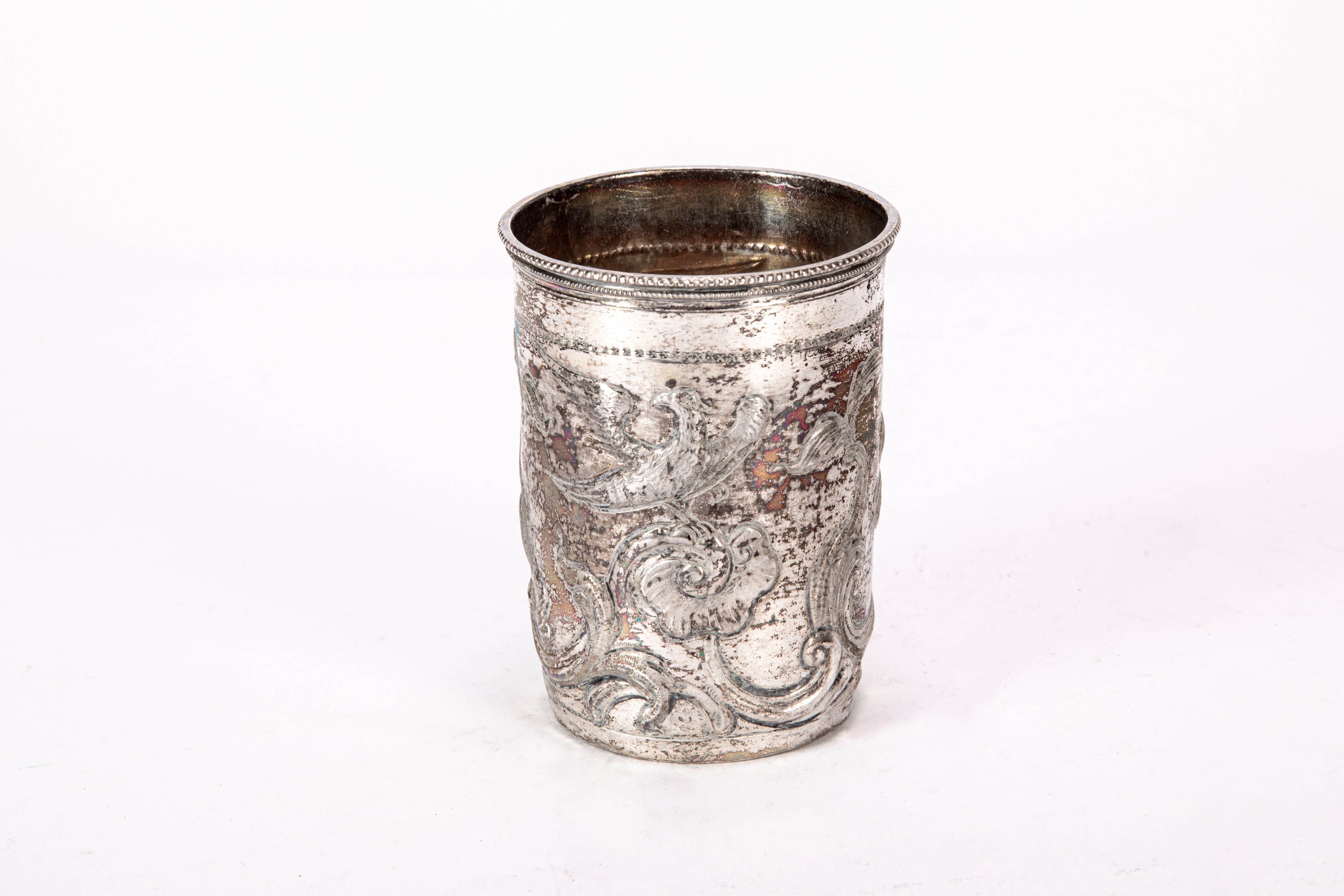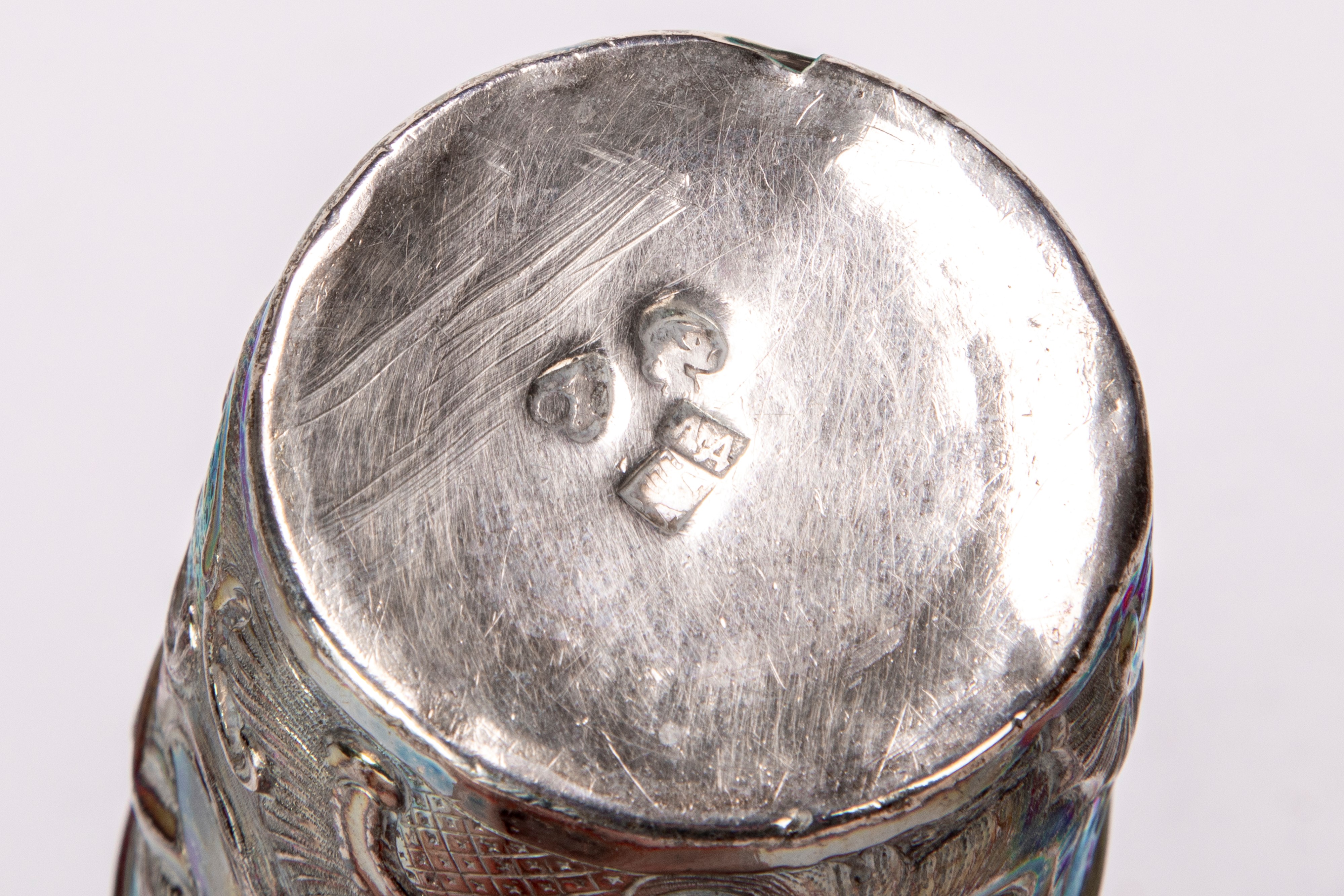 in argentodi forma cilindrica con decori sbalzati e incisi a uccelli rapaci e volute, misure diverse.