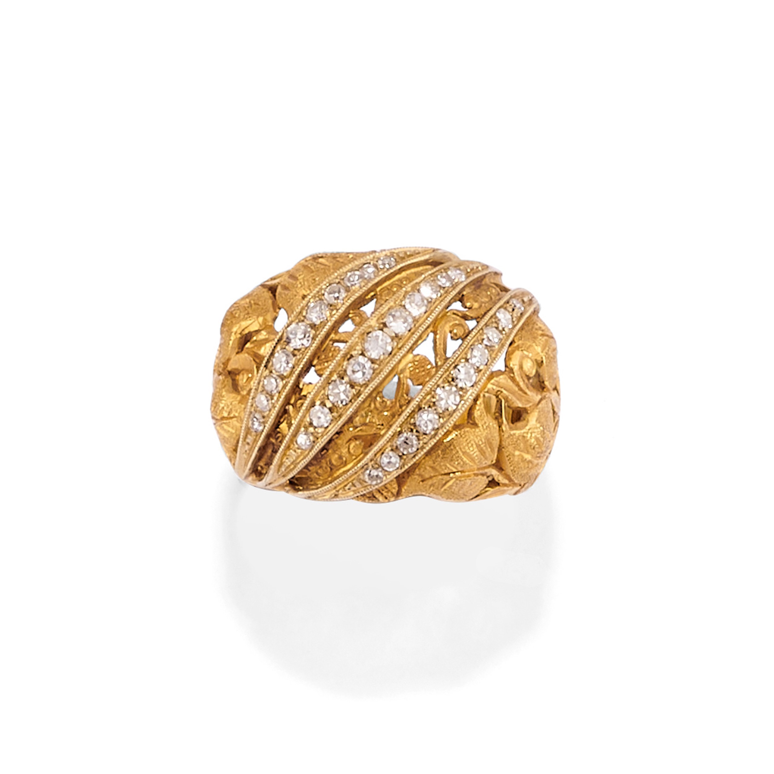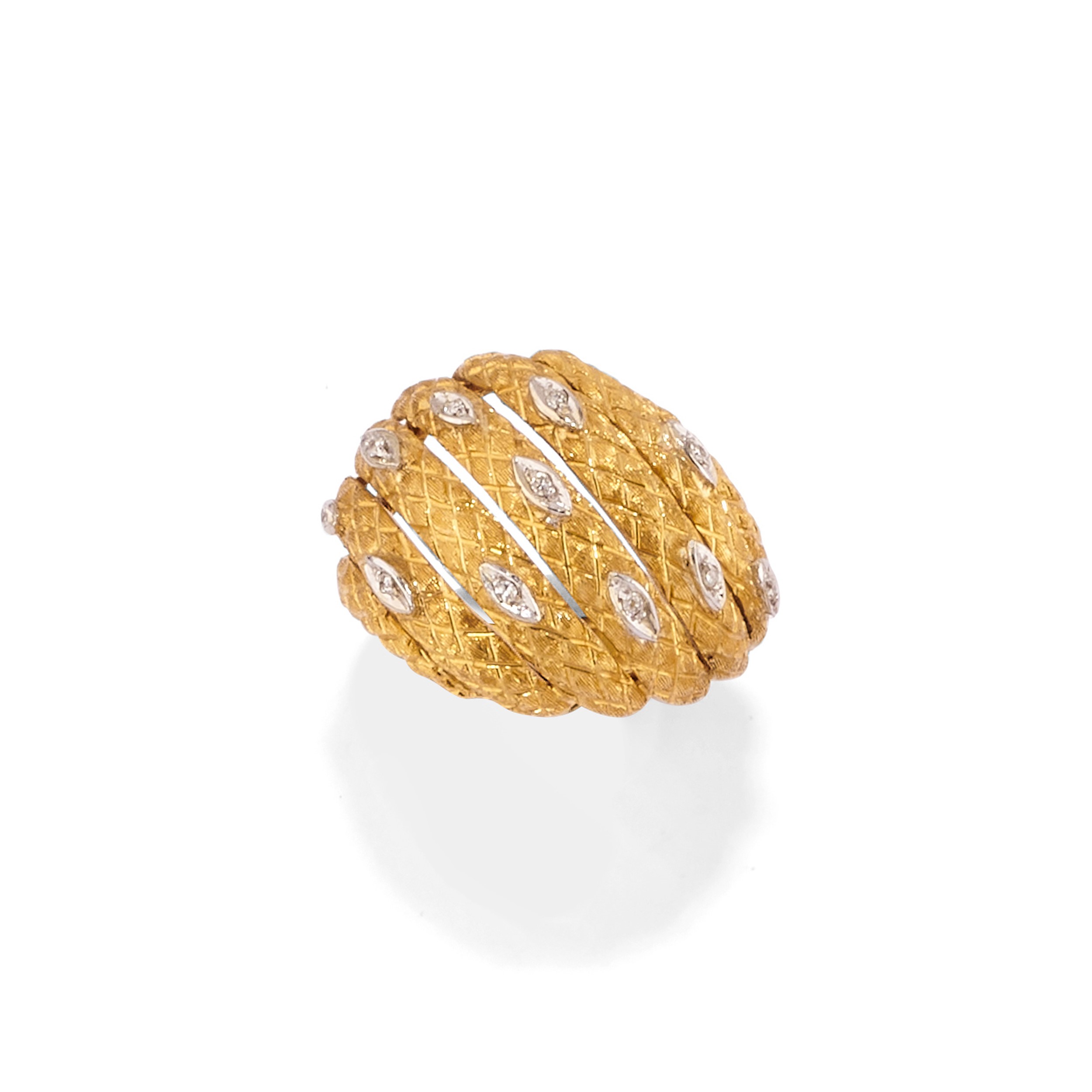in oro bicolore 18kbombati in oro satinato cesellato con diamanti taglio huit-huit.