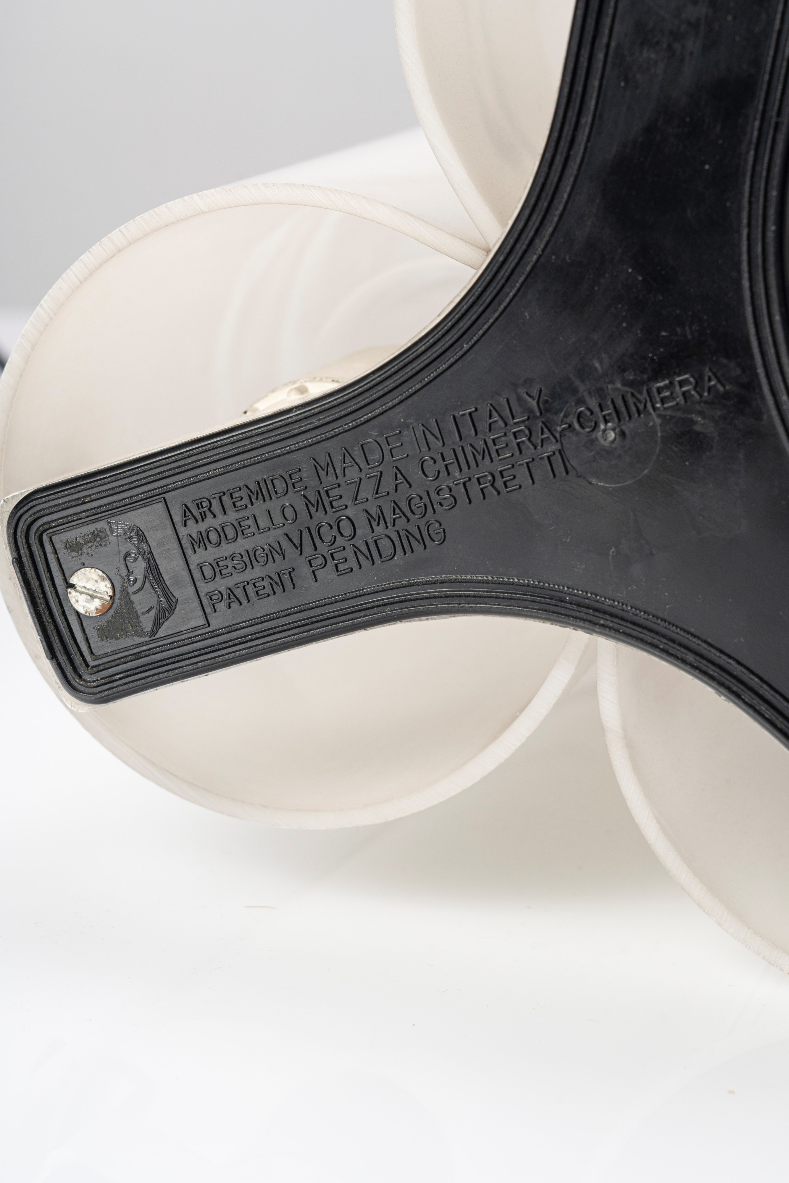 Lampada modello 'Mezzachimera' con base in metallo e diffusore in metacrilato bianco piegato a caldo